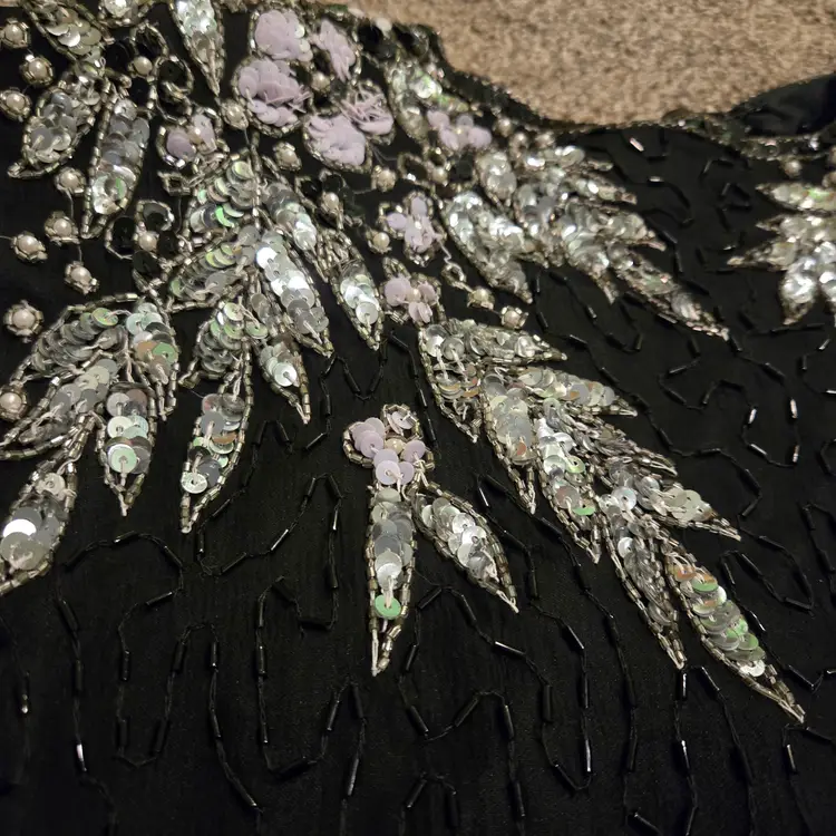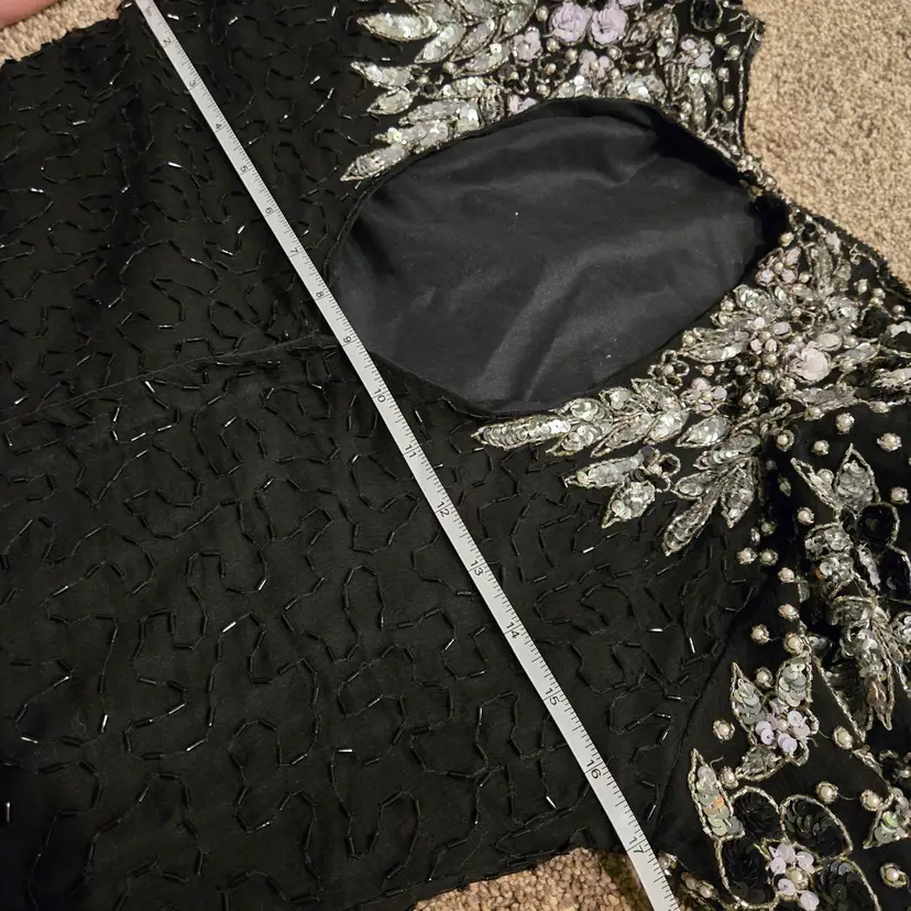 Open Back detail. The beading is in great shape! In great condition. Some signs of wear from use. Please see pictures for more details.