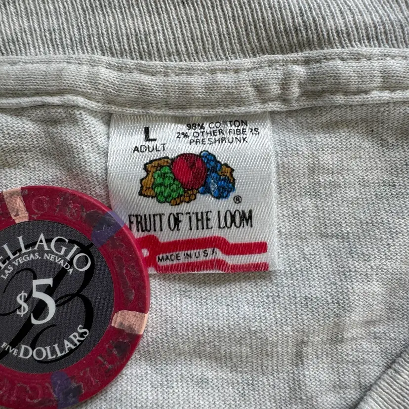 Preowned vintage condition. Made in USA, single stitched. Area of discoloration on back as shown. Please take a look at the photos for condition and measurements. Message with any questions.