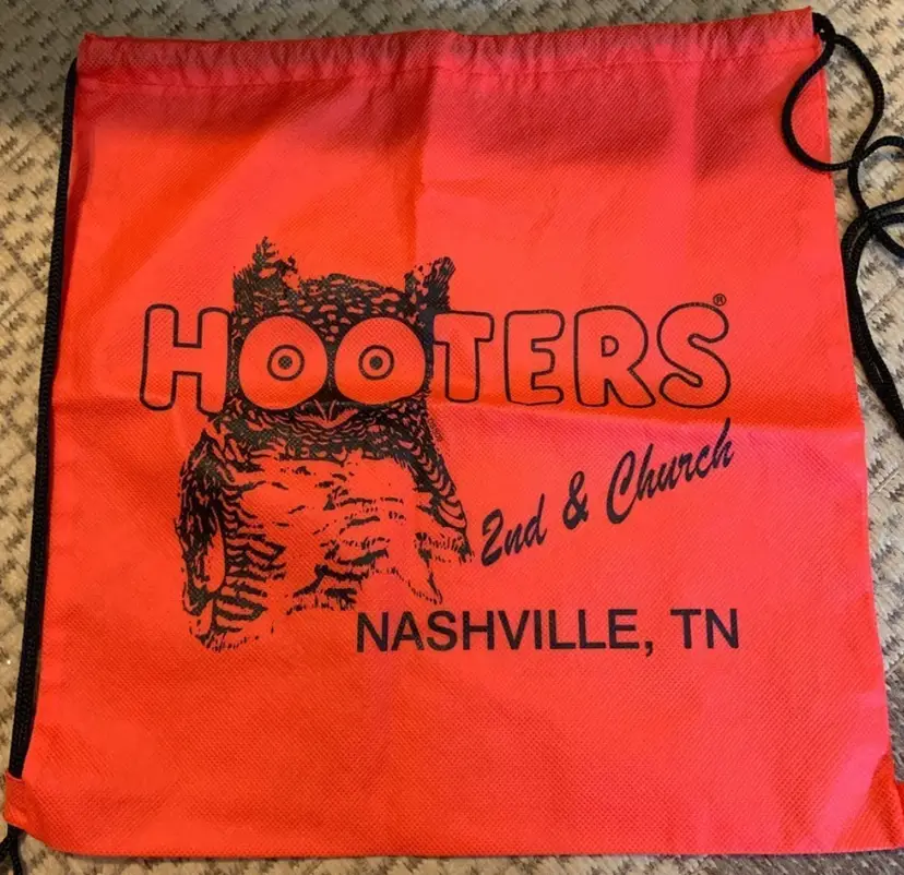 Vintage Hooters drawstring bag. This Hooters on 2nd & Church in Nashville opened in the early to mid nineties and was on the block that was destroyed by the 2020 Christmas bombing in Nashville. So this is a rare piece of Nashville nostalgia. FREE SHIPPING!