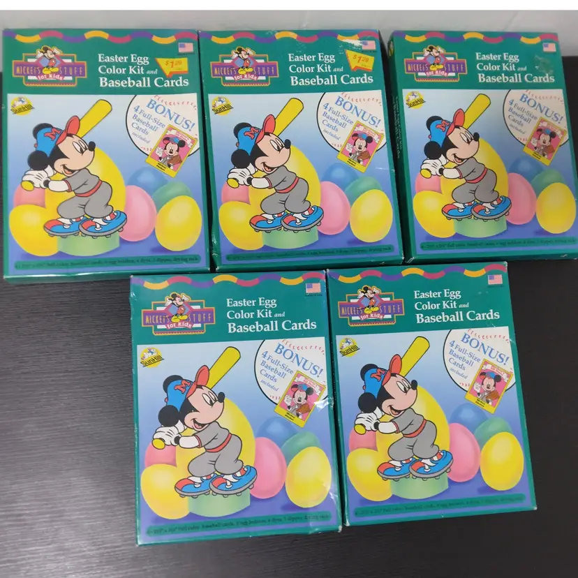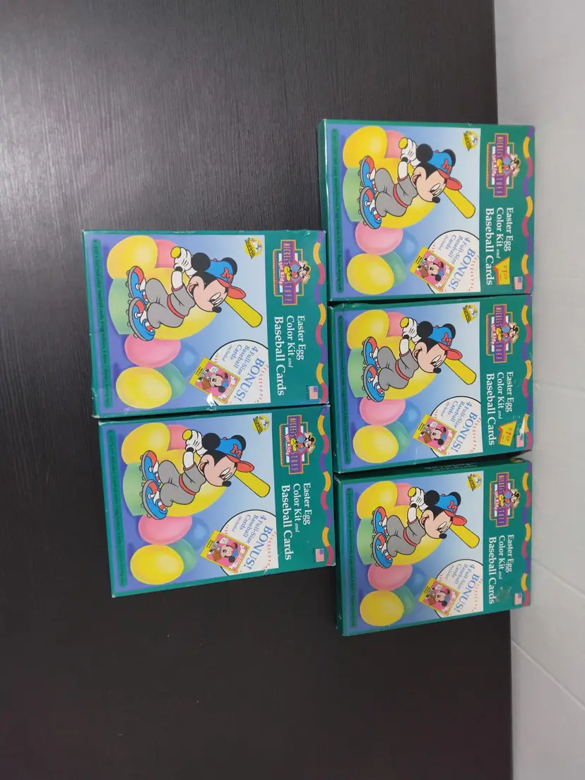5 Mickey Mouse Easter Egg Coloring Kits 1990's New in box Bonus Baseball Cards