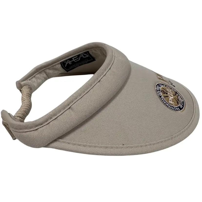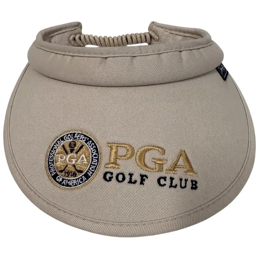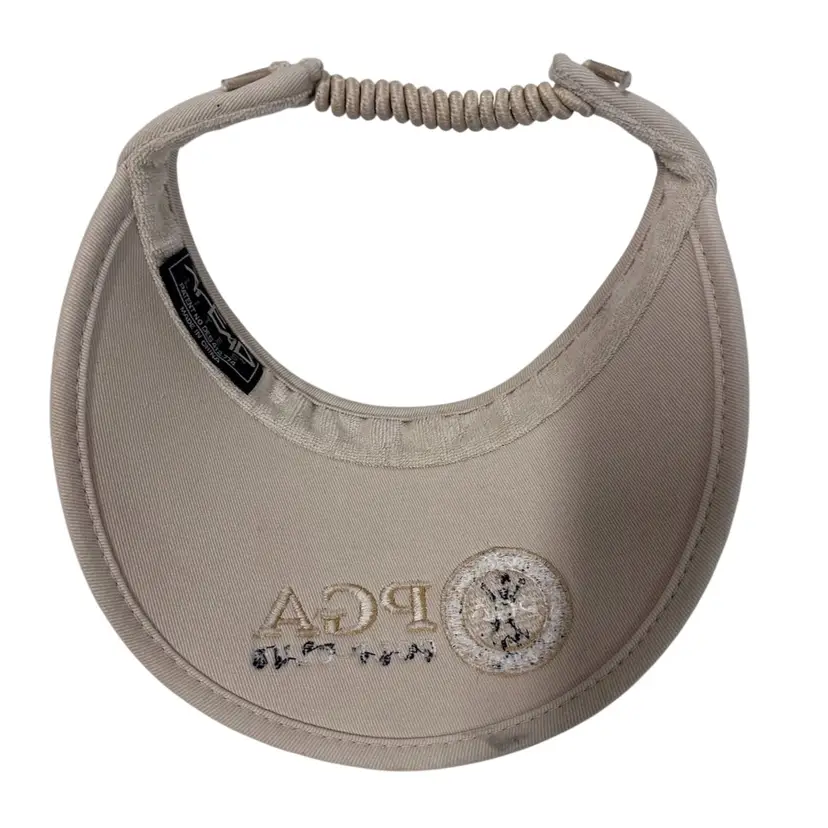 The Vintage 90's PGA Club Women's Foam Golf Visor by Ahead Brand is a stylish and practical accessory for any golfer or activewear enthusiast. This beige visor features an embroidered logo and is made of breathable foam material, providing UV protection and a wide brim for added coverage. The one-size design is adjustable and perfect for all seasons, making it a unique and nostalgic addition to any wardrobe.