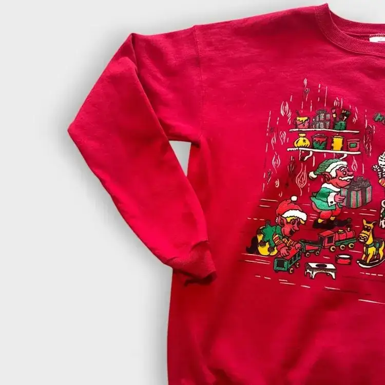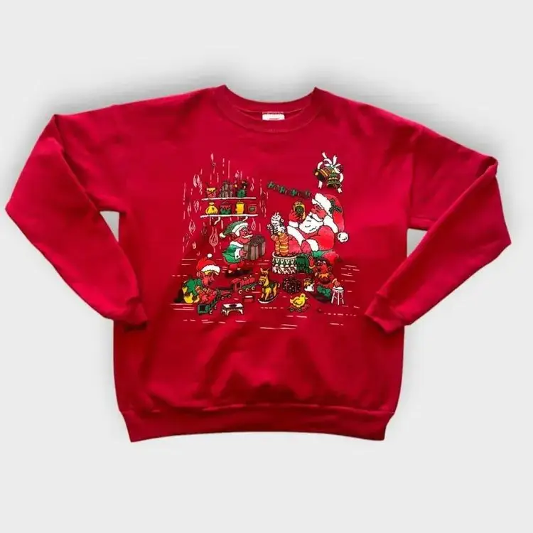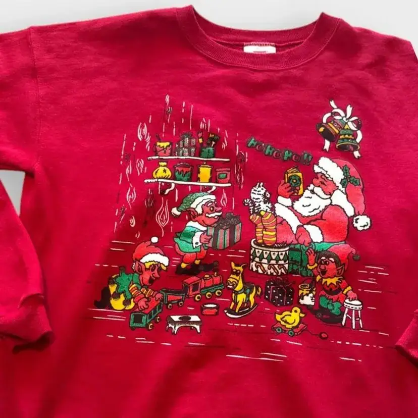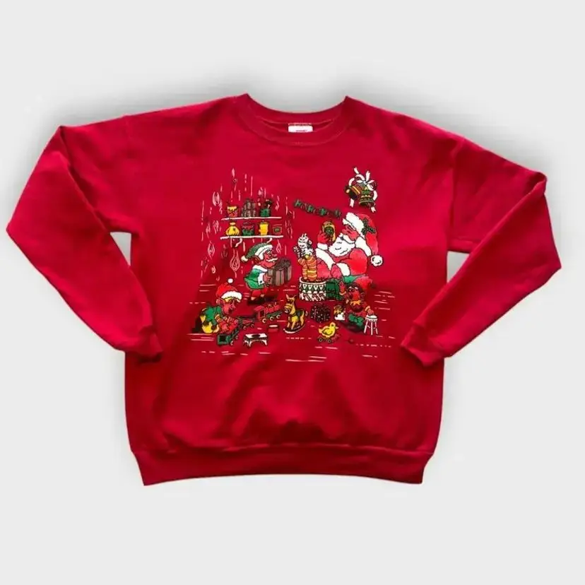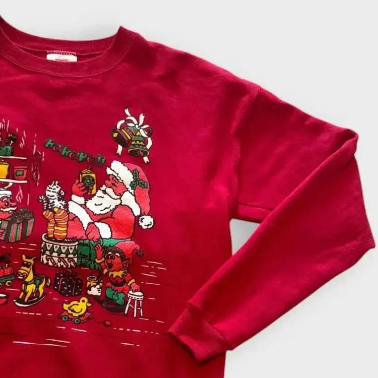 Vintage pullover Christmas Santa sweatshirt. Hanes Her Way. Tagged a vintage medium. This is vintage sizing so please also refer to measurements. Soft. Cute glitter accents. Good vintage condition with some minor wash wear to the graphic.
