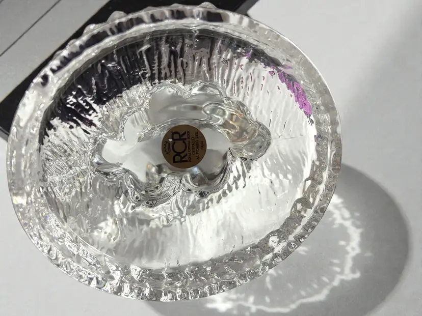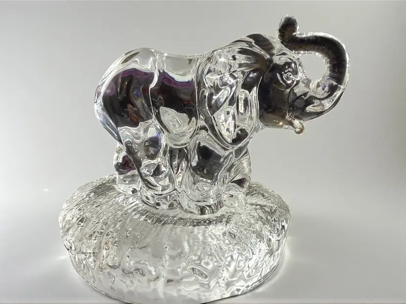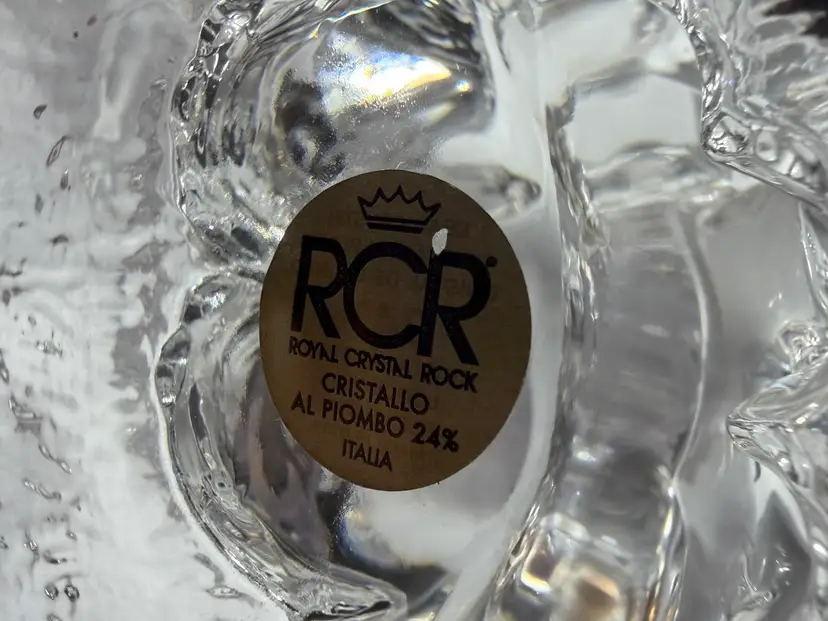 Vintage 90s RCR Royal Crystal Rock 24% Lead Crystal Glass Trunk Up Elephant & Baby Calf Figurine - Made in Italy - 5.5” x 4.5” X 4”
