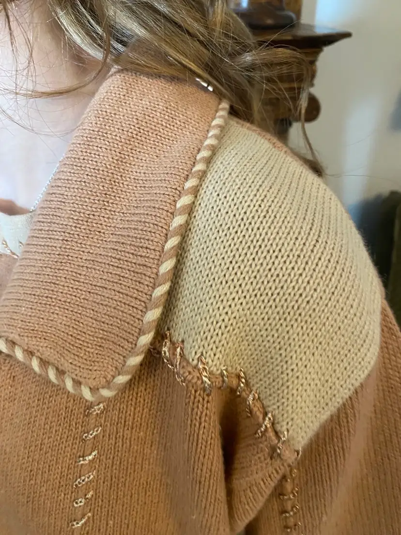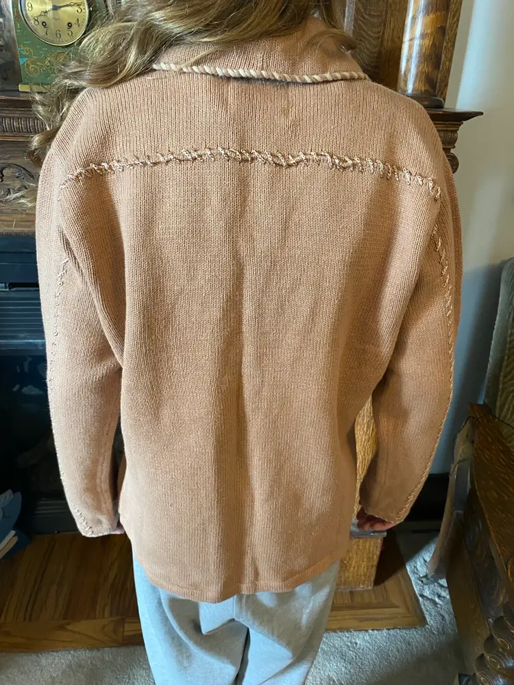NWT, excellent condition. Comes with a sweater and sleeveless blouse. Light brown with crocheted stitching. Ptp-20 W-19 L-24