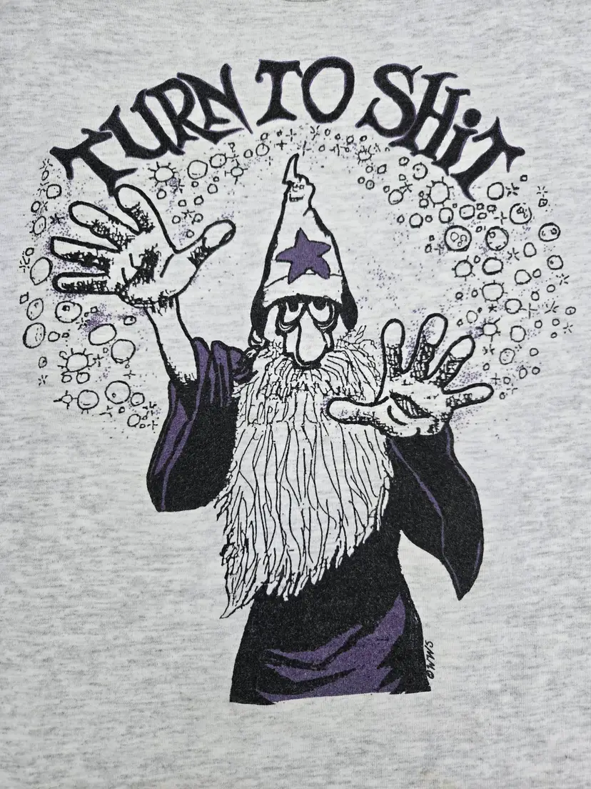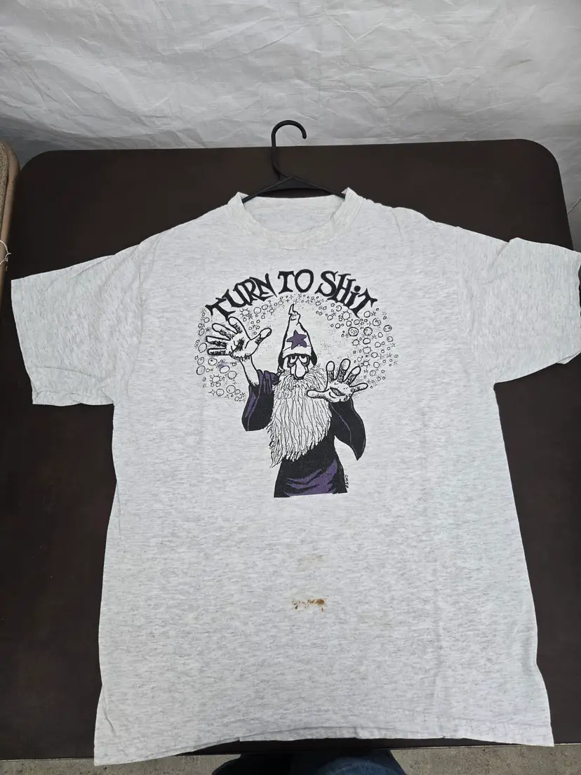 Vintage 90s Turn to sh*t Wizard Dead union Tshirt Gray No tag Approx size Large Small stain in front And upper back of the shirt See pictures for conditions