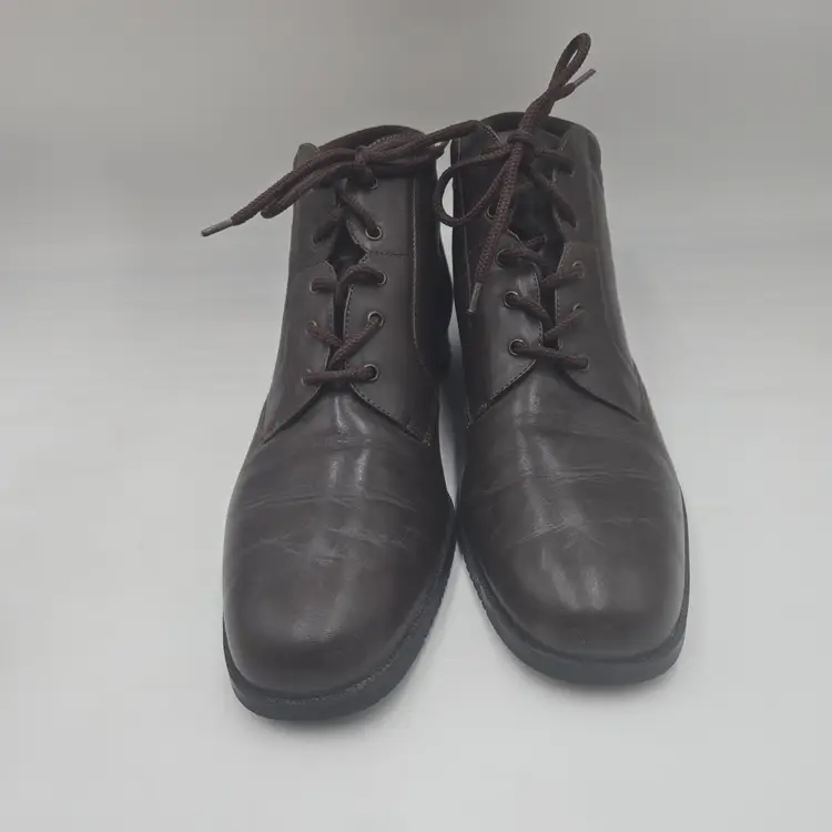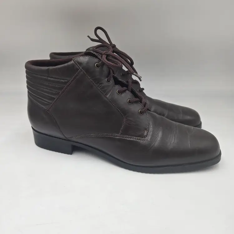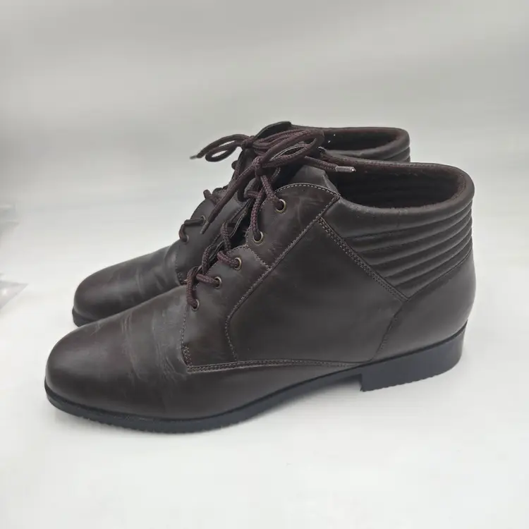 Vintage 90s y2k Granny Brown Leather Lace-up Ankle Boots Bootie Womens Sz 11