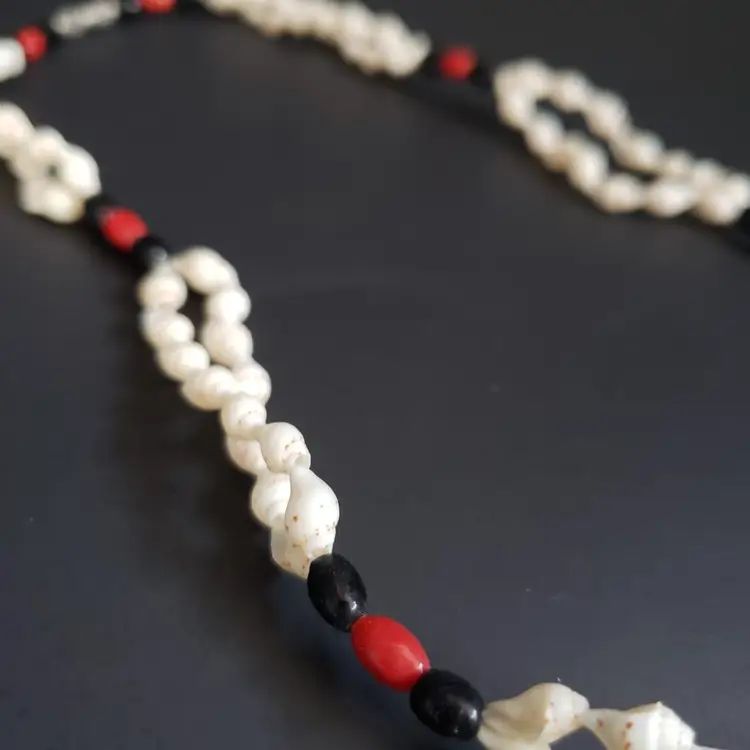 Vintage seashell and beaded necklace. Measures approximately 18" when outstretched. Good condition.