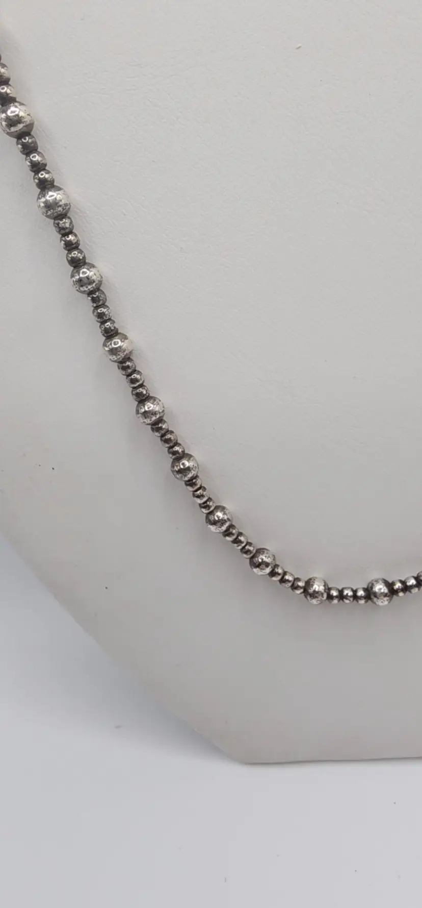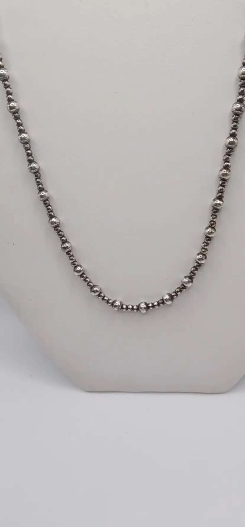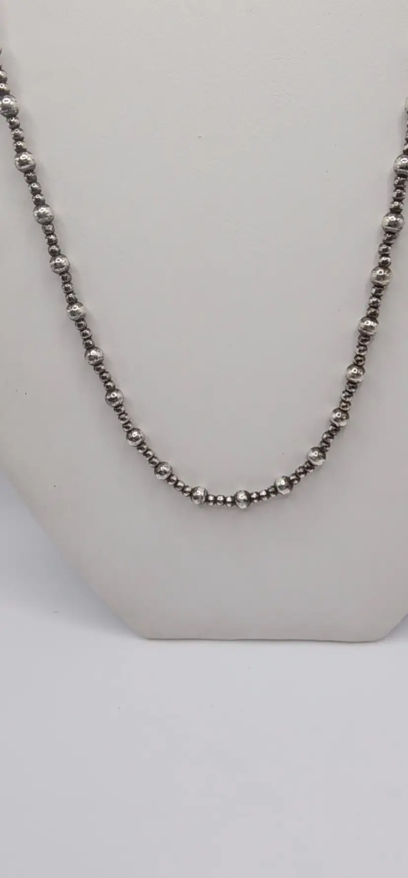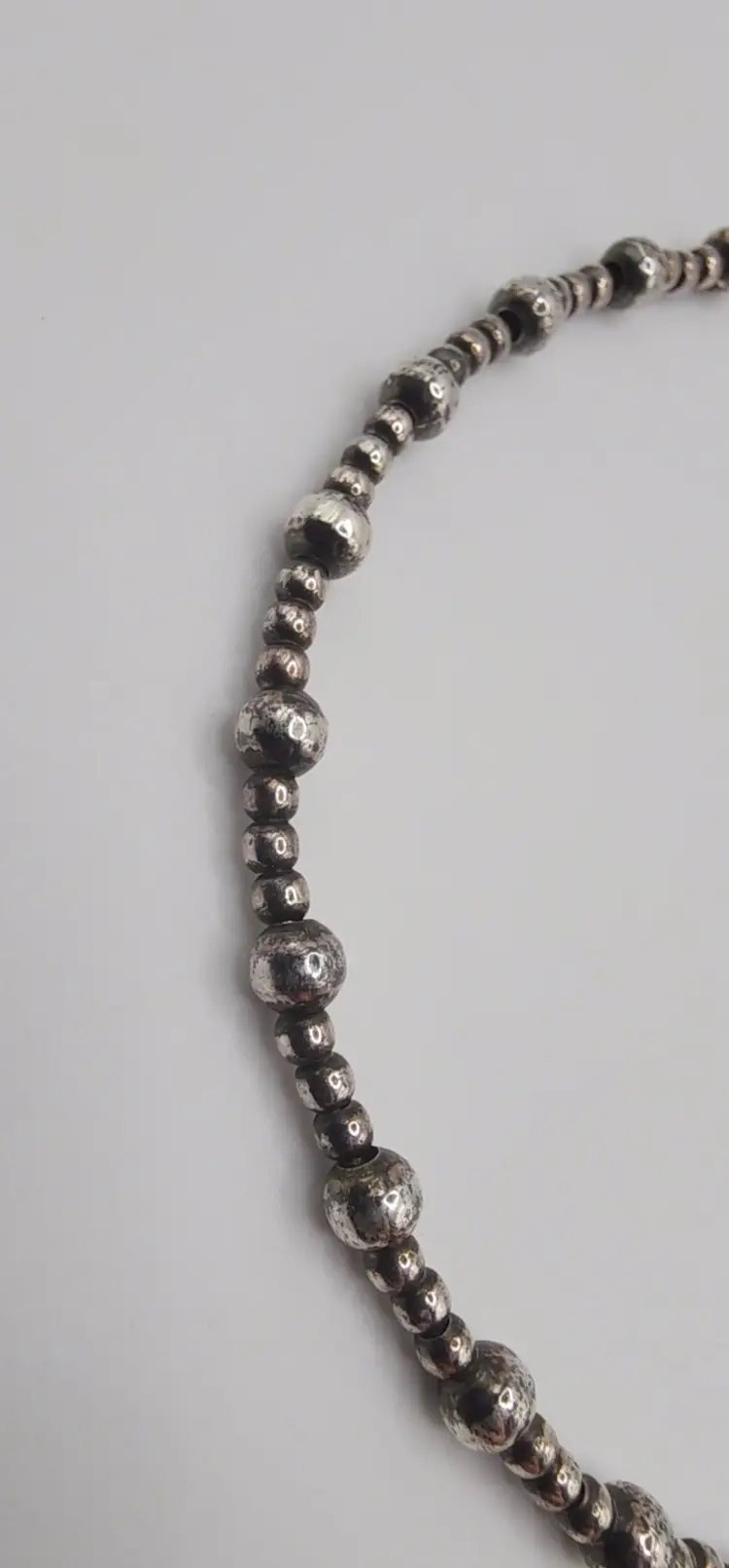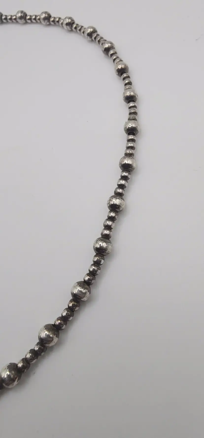 Beautiful 925 beaded necklace with a Toggle clasp. 18" and 14.8 grams. There is a dent on one of the beads. Please see all pics. I have not shined this, but if interested I can for an added amount. Please let me know prior to purchase. Thanks!