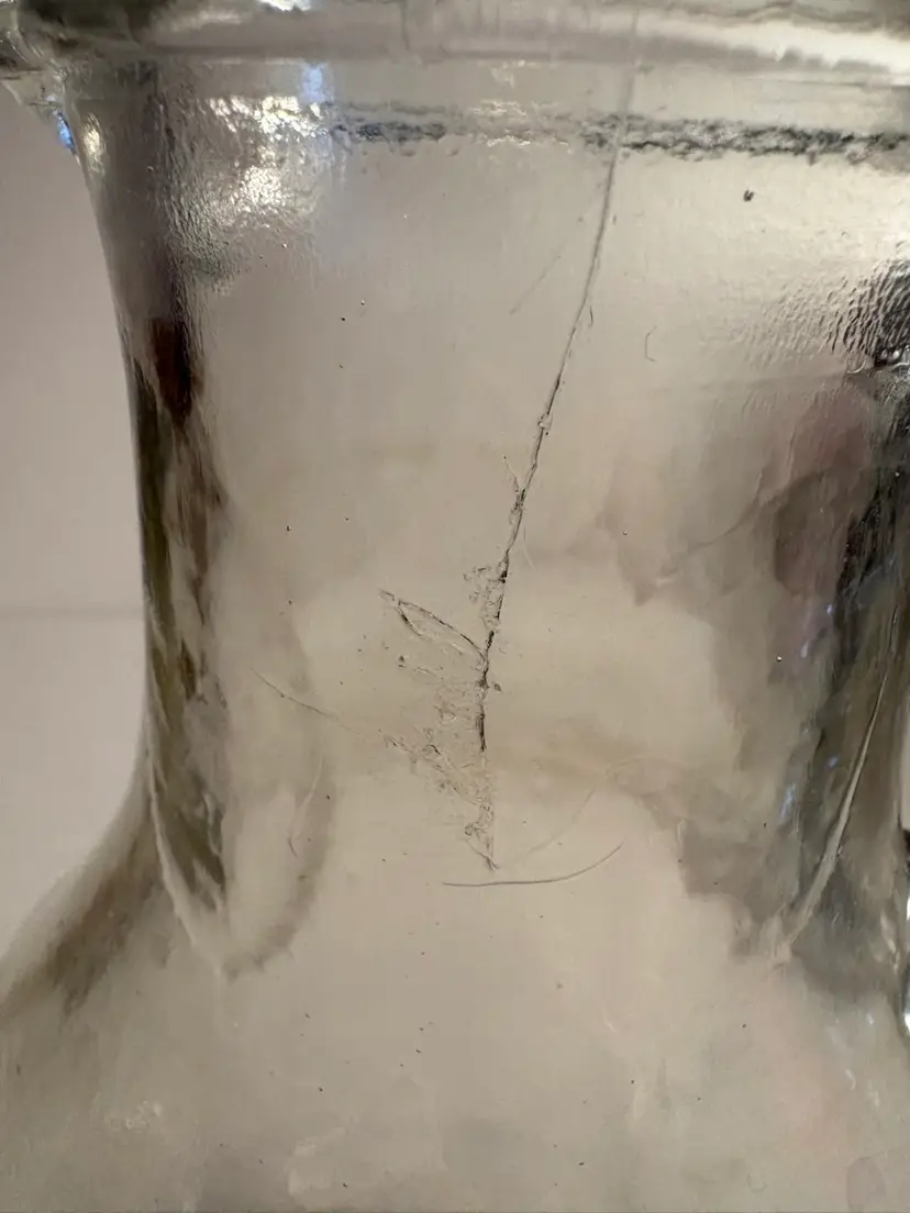 There appears to be a crack at the top of the neck. It doesn’t go through to the inside so it could just be an exterior flaw.