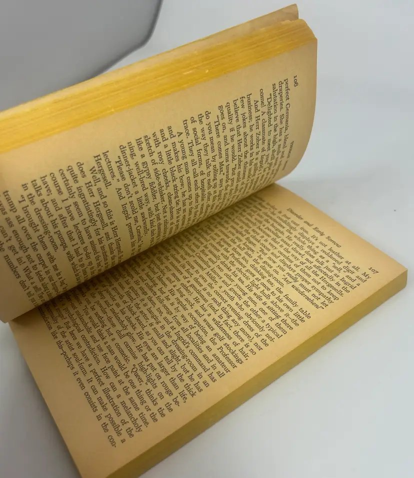 Common wear on cover with creases near spine and light ones throughout cover. Pages in good condition with no rips or tears, has a few folded corners in first few pages top right corner. Common yellowing. Has raised owner stamp on first page. Please look over and enlarge photos for overall condition.