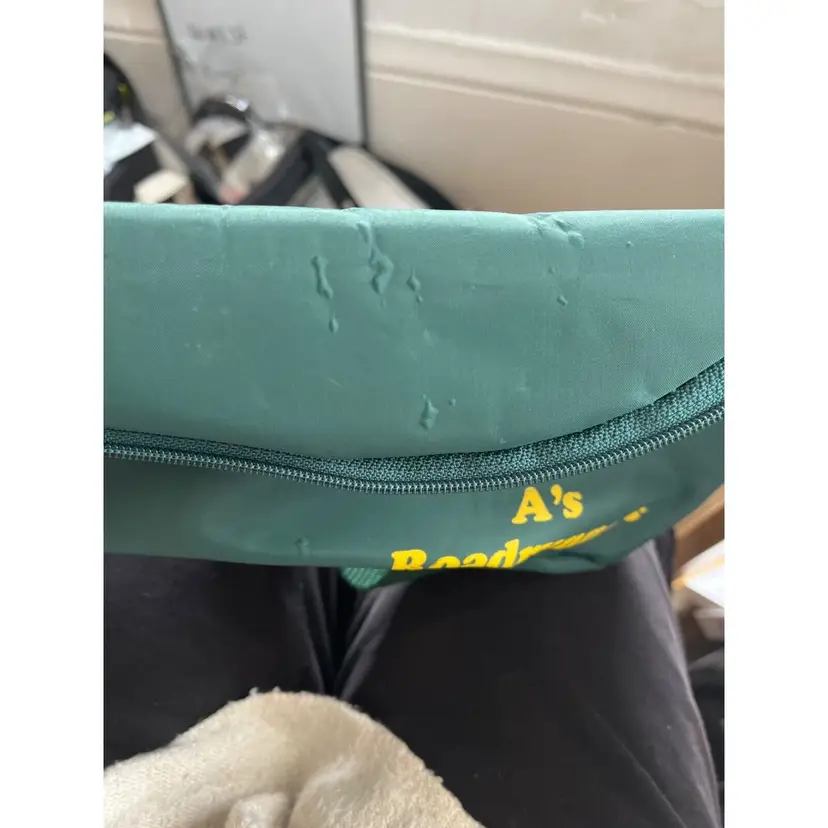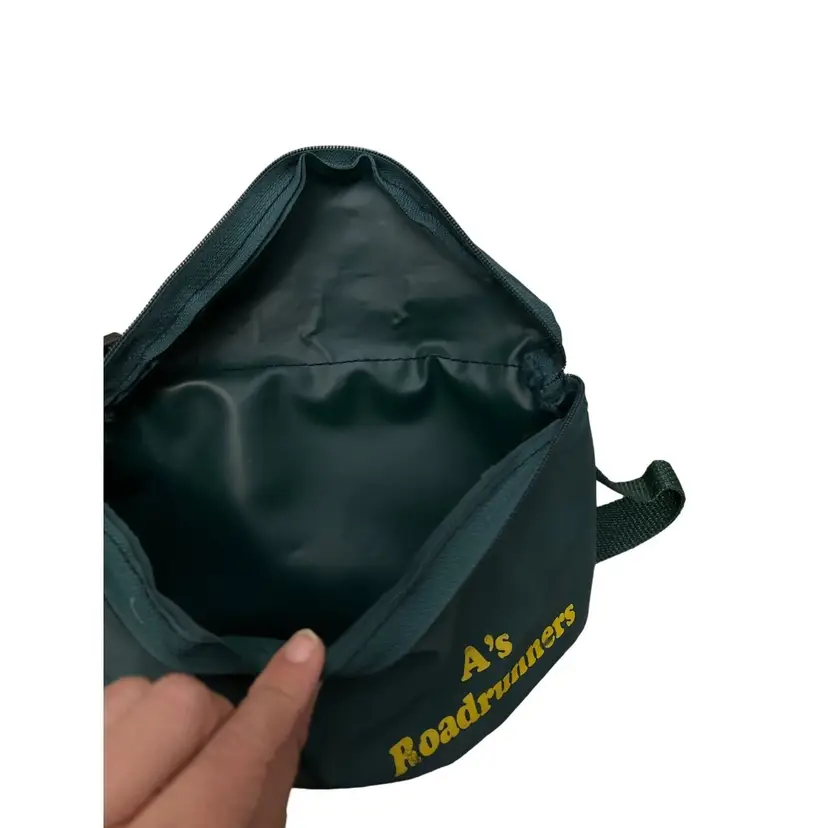Brand: Vintage A's Roadrunners Bag Width: 9 in Pattern: Logo Department: Women Shape: Round Size: 9 X 5 Exterior Color: green and yellow Style: Crossbody Bag Depth: 5 in Exterior Material: Nylon