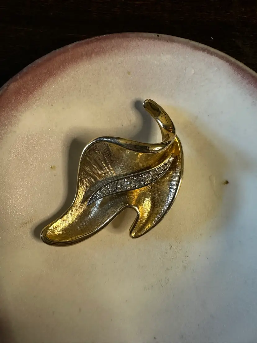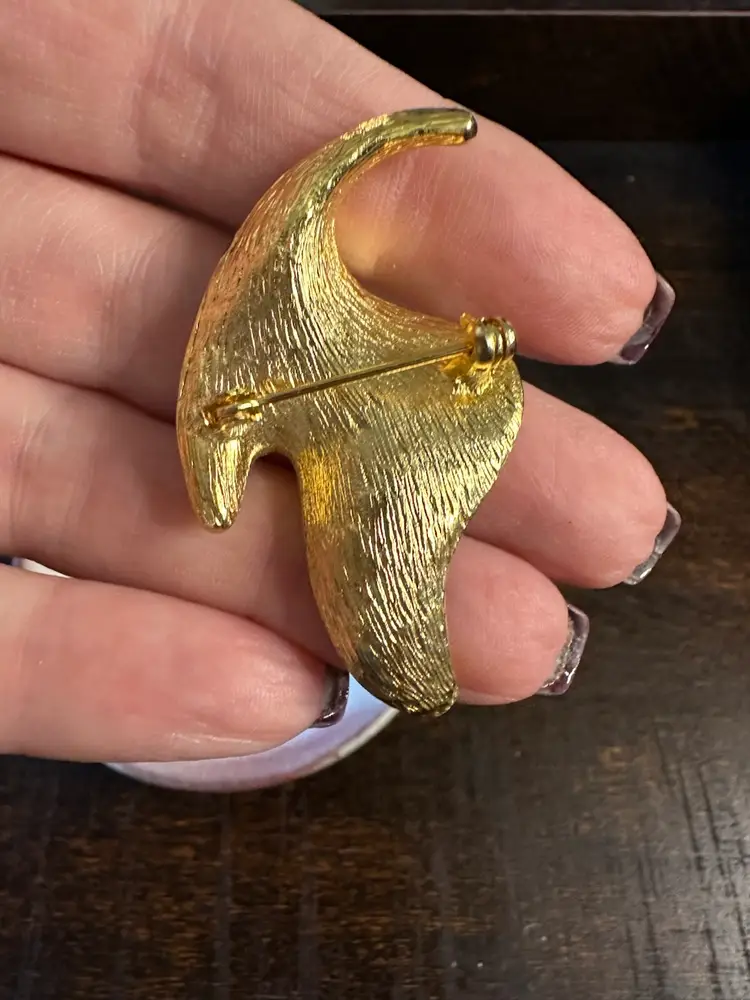 Vintage A&S Attwood and Sawyer brooch gold-plated leaf shape pin. Not signed