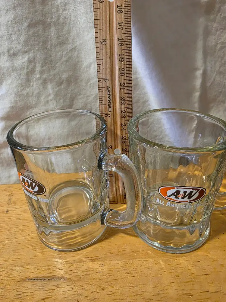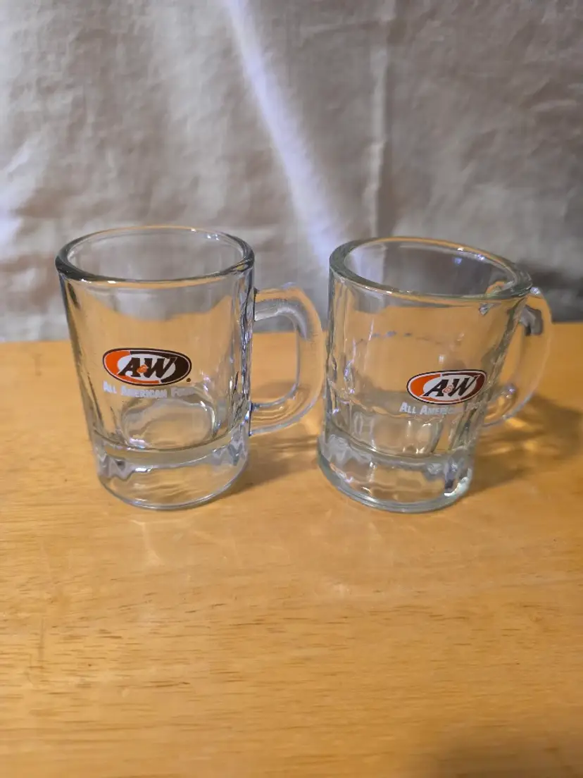Cute set of vintage A&W Root Beer mini glass mugs. Perfect for collectors or adding a nostalgic touch to your decor. Excellent condition with no chips or cracks.