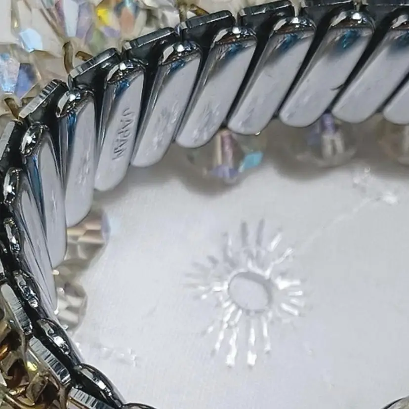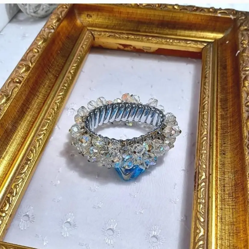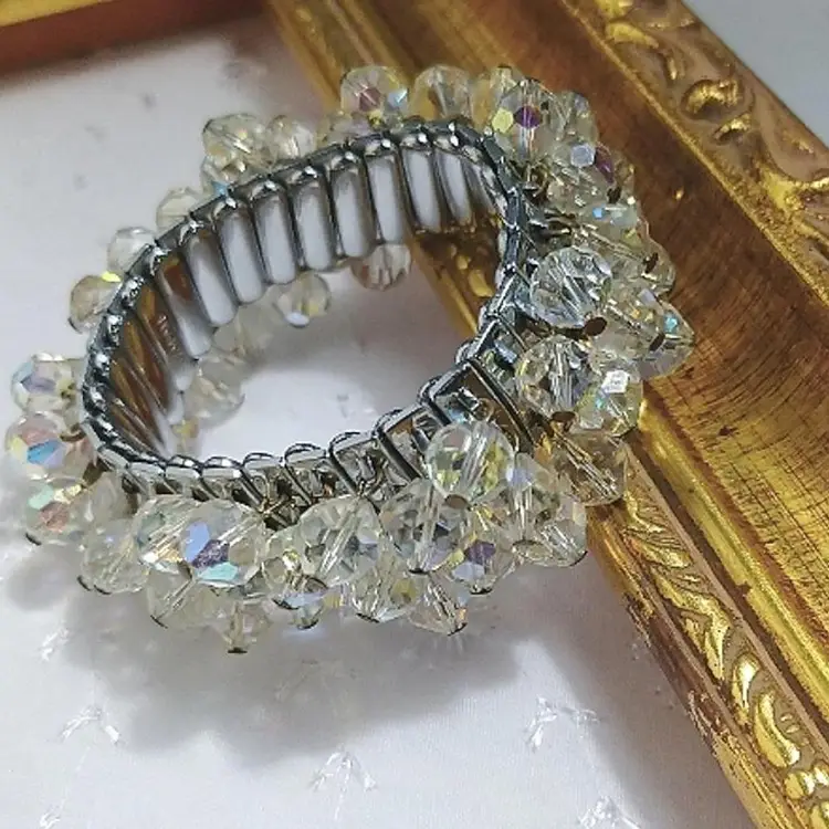 Add some sparkle to your wrist with this vintage stretch bracelet featuring shimmering crystal beads. Perfect for any occasion.