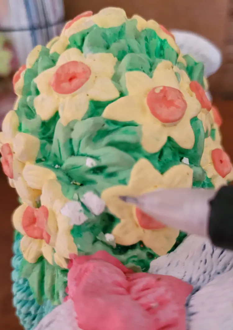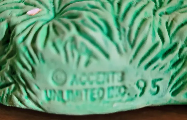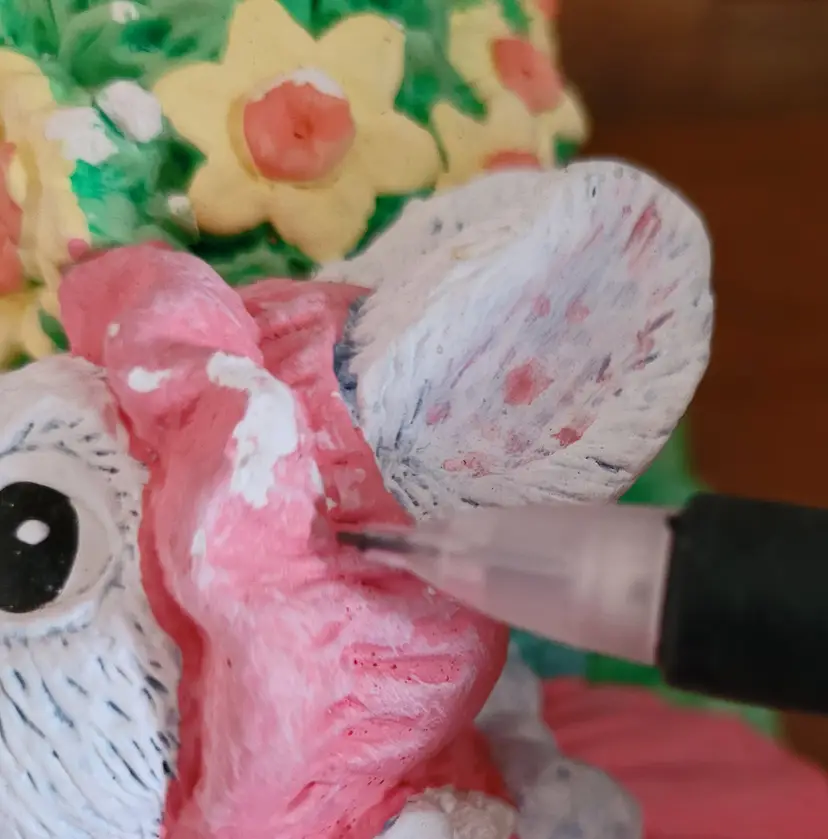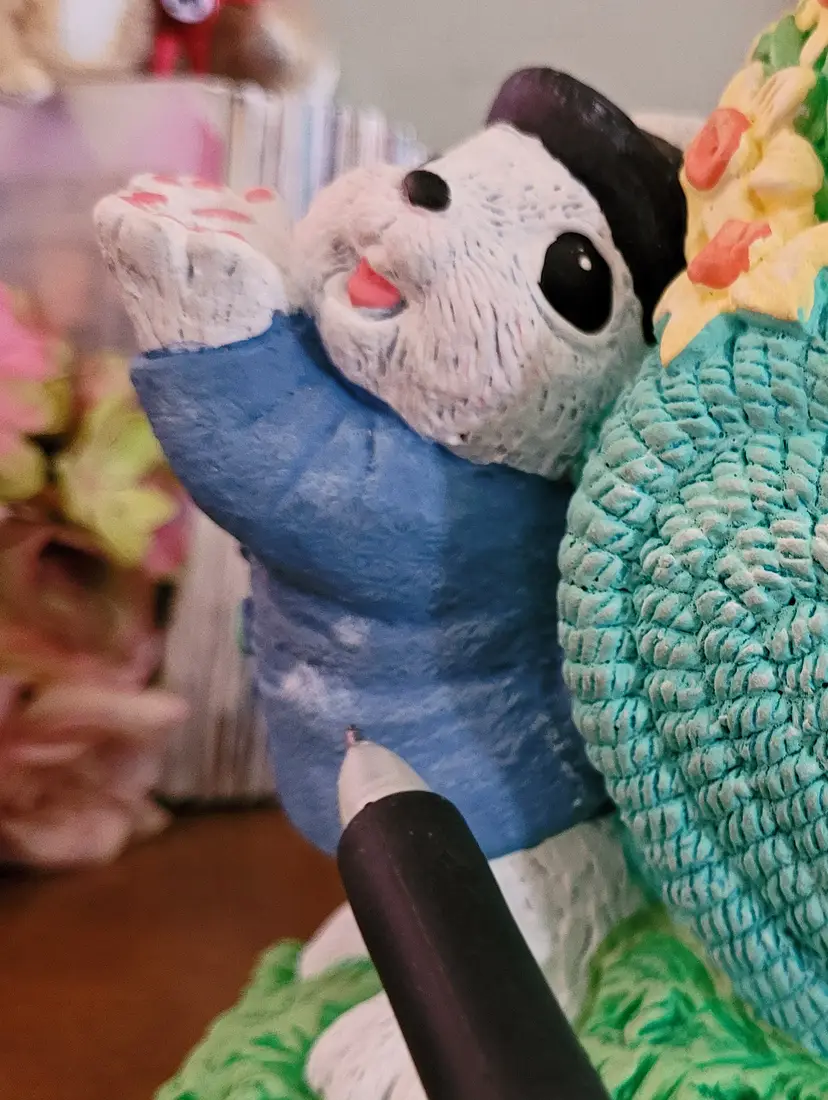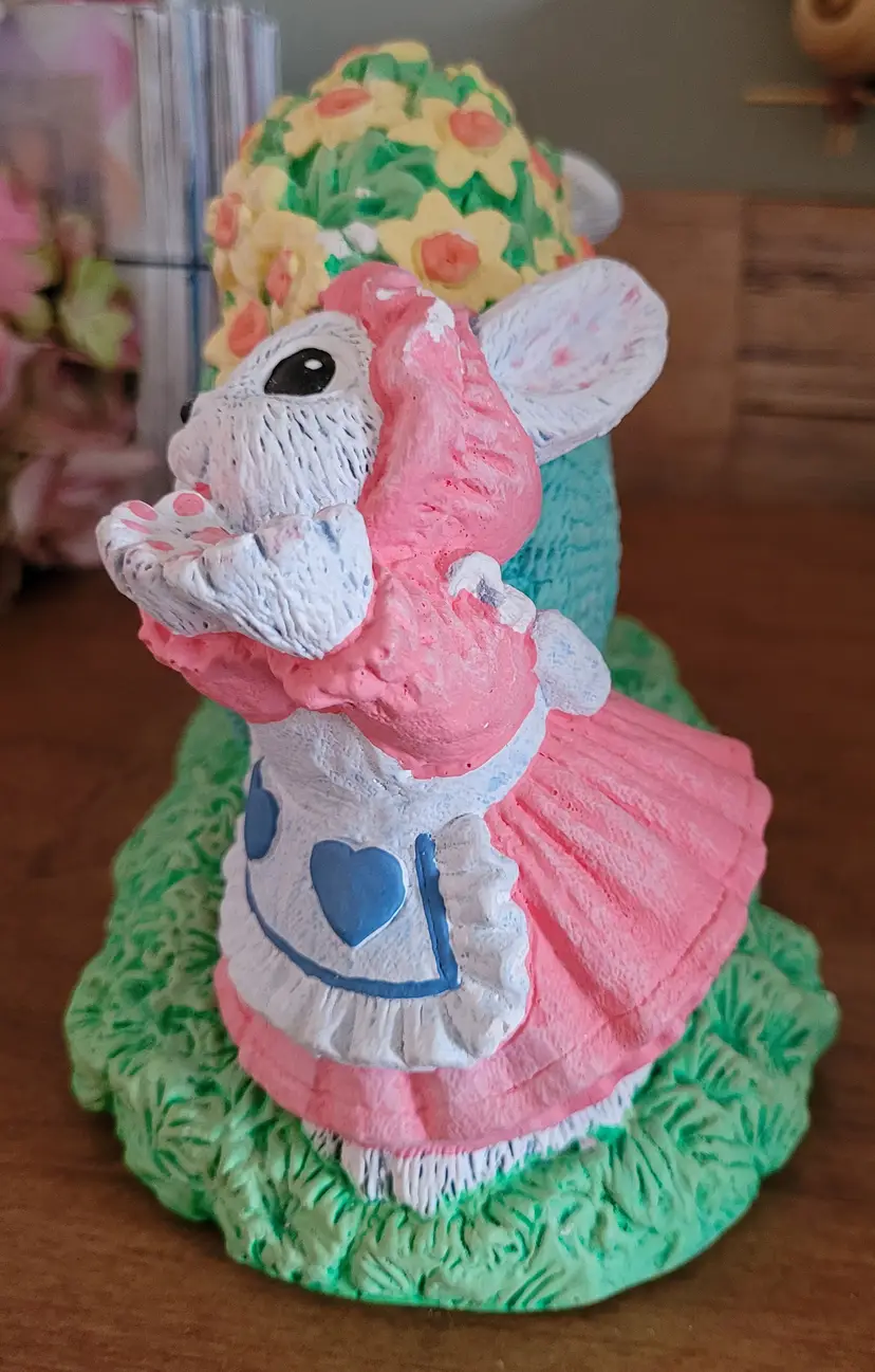 Was a floor sample, because I worked at Michaels in a past life. This is very hefty. As Is: there should be a wore that goes from one bunny's hand up and over the heart to the other bunny's hand. Wire would have had a few ceramic hearts (I think) hanging from it. Also, has some paint worn spots and some paint chippage. (If the wire ever shows up I will send it your way.) From a smoke free home, please refer to the pictures for its condition and size. Approx: 7.5x6x4.5