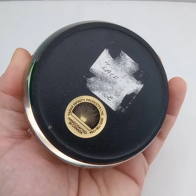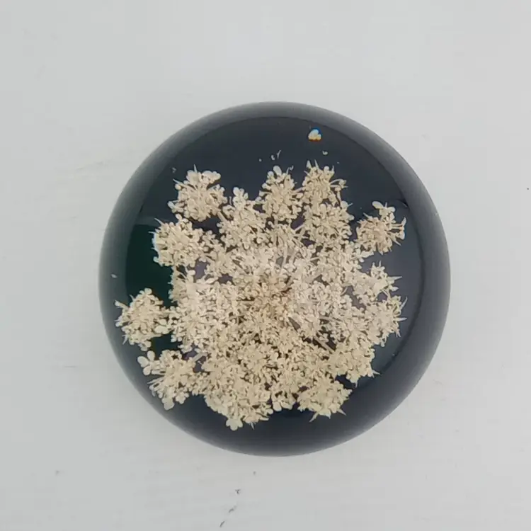 This is a beautiful vintage acrylic paperweight with dried Queen Anne's lace inside. It's from Tarax Infinity in Canada and is in great condition with no noted flaws.