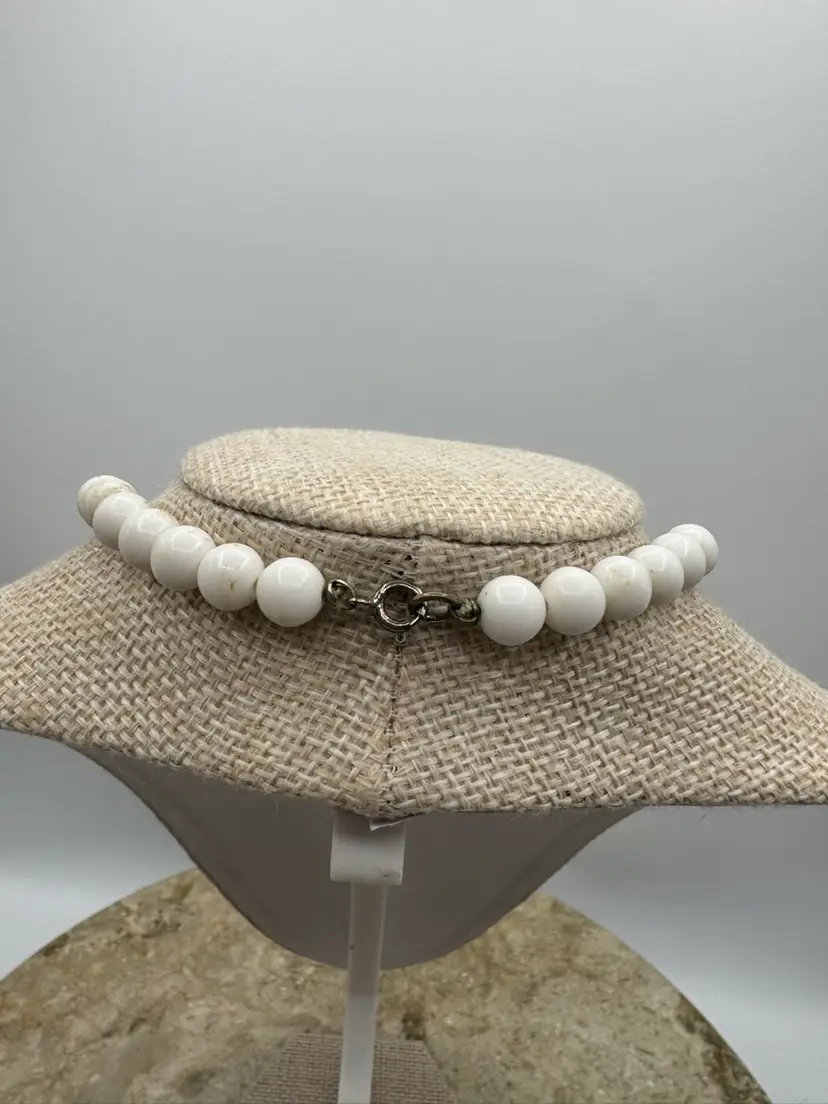 Vintage Acrylic White Pale Blue & Peach Necklace. Has UV glow. Good vintage condition. Measures 16”