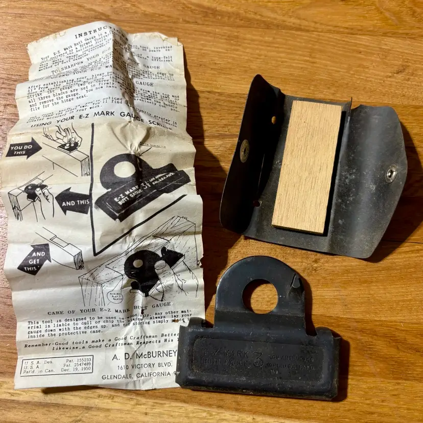 Vintage A.D. McBurney 3" E-Z Mark Butt Marking Gauge in original plastic snap case with instructions. Appears to be lightly used, but no issues. Good functional condition.