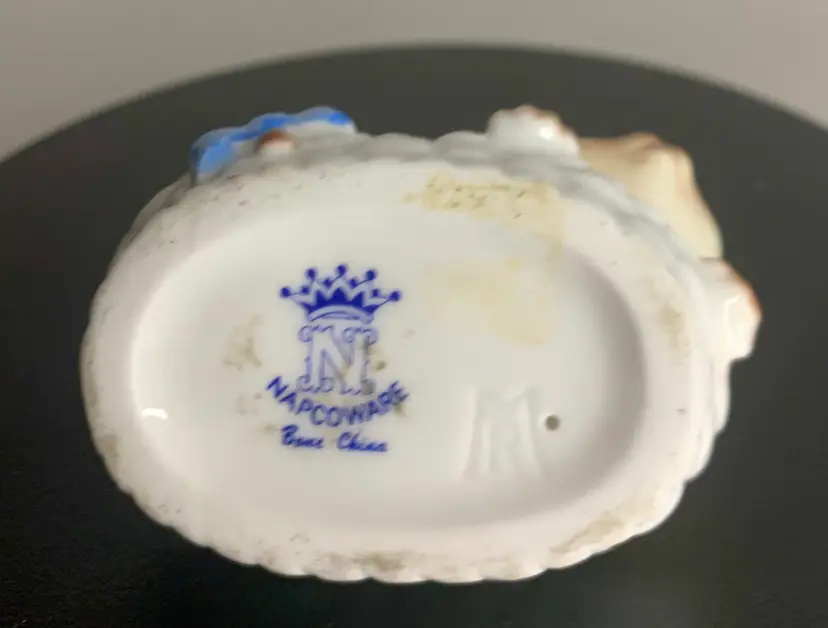 This is preowned with no obvious chips or cracks.it has a making of bone China Napcoware. Approx 1 3/4” tall by 2 1/4” wide.