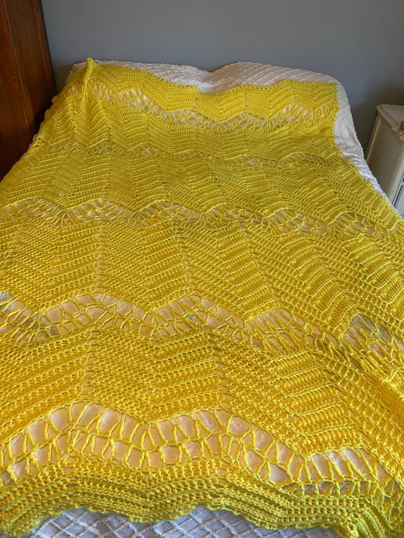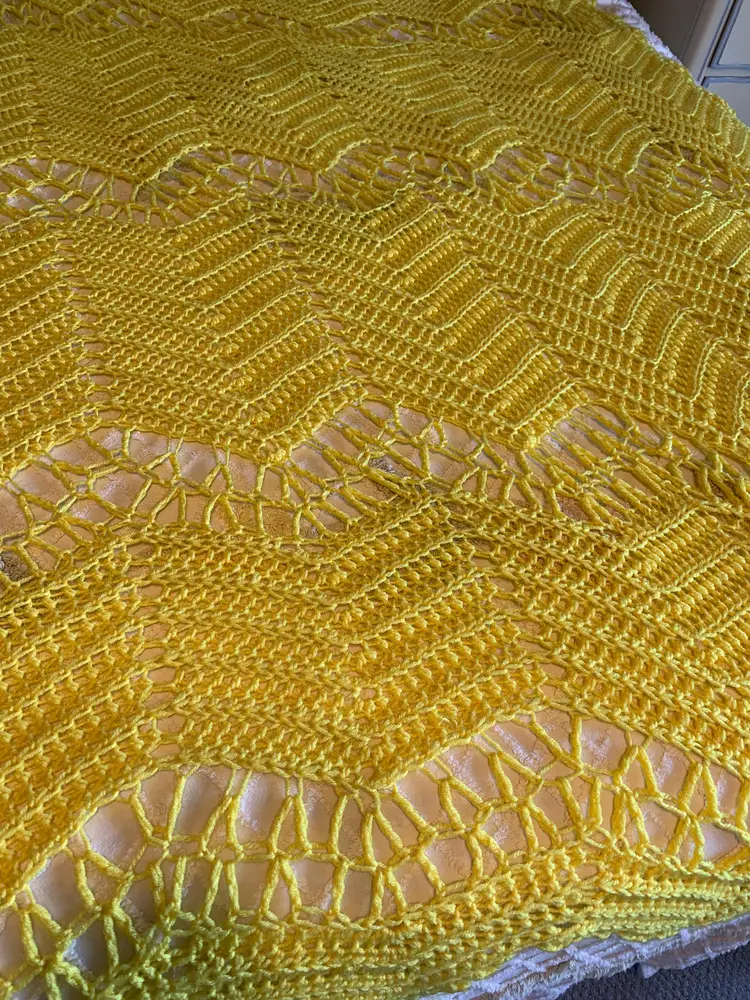 Vintage bright yellow Afghan. Very good condition. 90 inches x 80 inches.