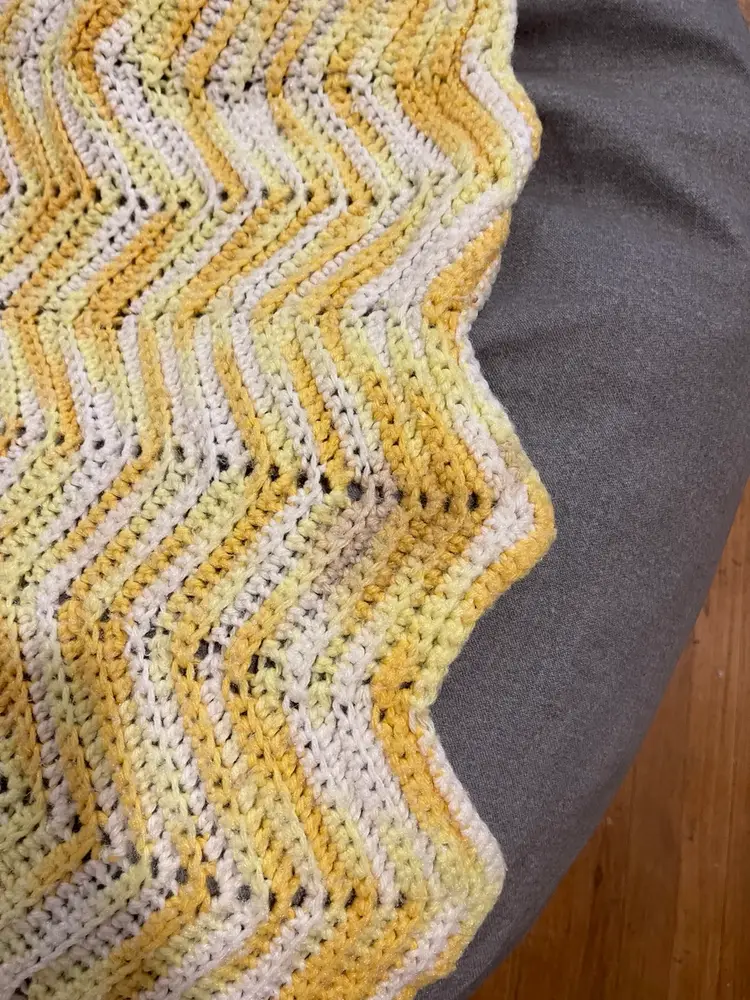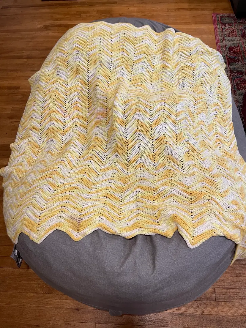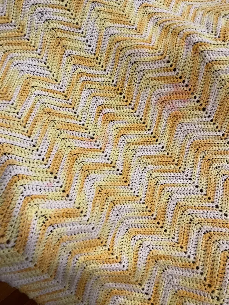 Vintage yellow stripe afghan GVC some stains, I did not try to get them out No pulls or holes 55 x 48