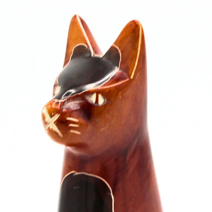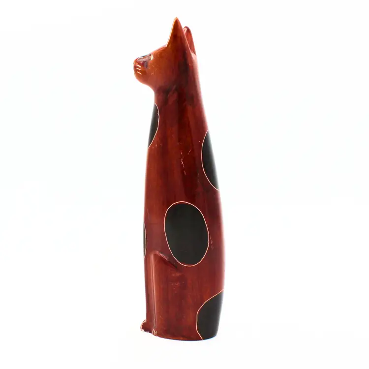 Vintage African Carved Marble Stone Cat Figurine – Spotted Cat - Made in Kenya Animal Sculpture, 7”