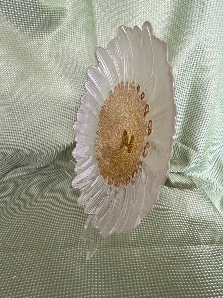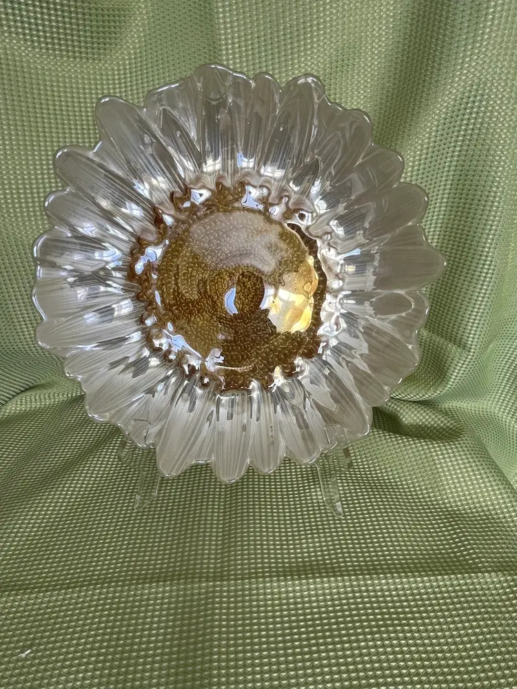 Crafted with meticulous attention to detail, this Vintage Akcam Handmade Turkish Glass Sunflower Plate is a stunning piece of glass art that brings the charm of the 1960s era into any space. Its unique design showcases the exquisite artistry synonymous with handmade Turkish craftsmanship, making it a standout addition to your collection or decor. The sunflower motif, a symbol of happiness and longevity, is masterfully captured in the glass, offering a vibrant and timeless aesthetic. The plate has a lustrous finish and is approximately 12 x 13 inches. This art glass is a testament to the skill and tradition of its origins, sure to be a conversation starter and a cherished heirloom for years to come.