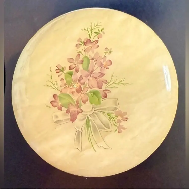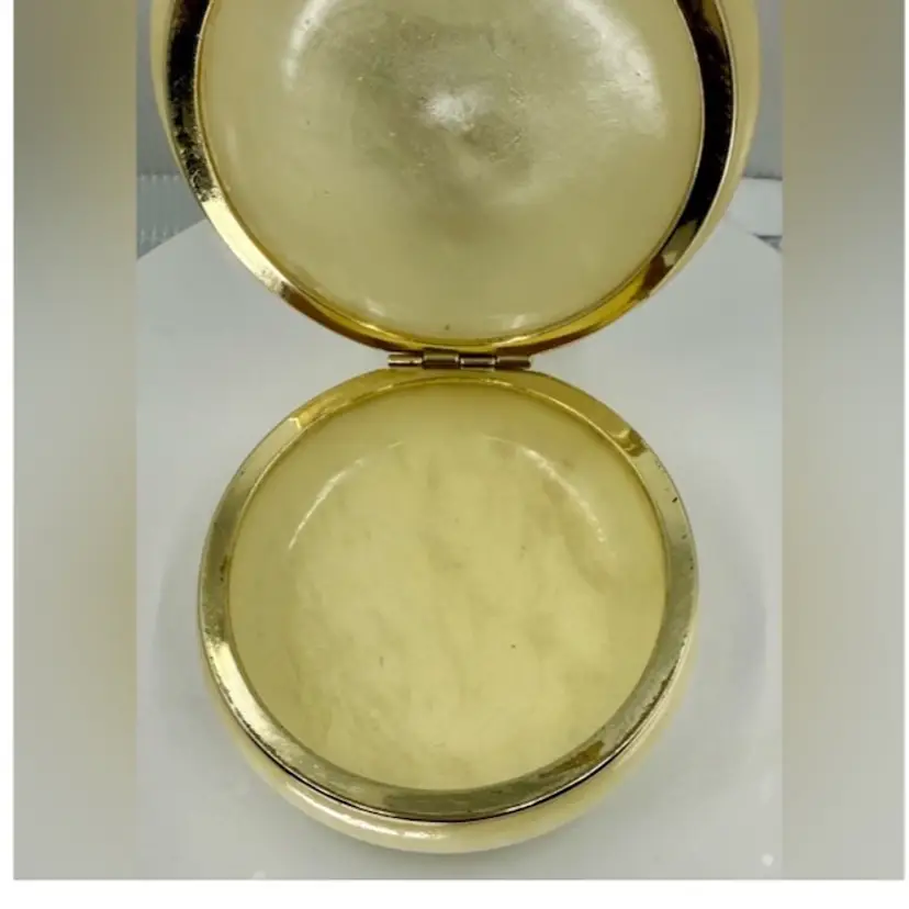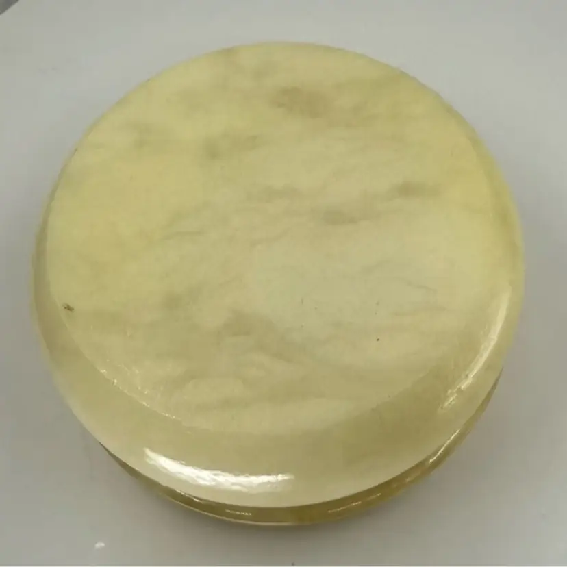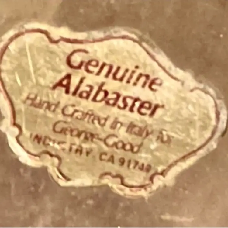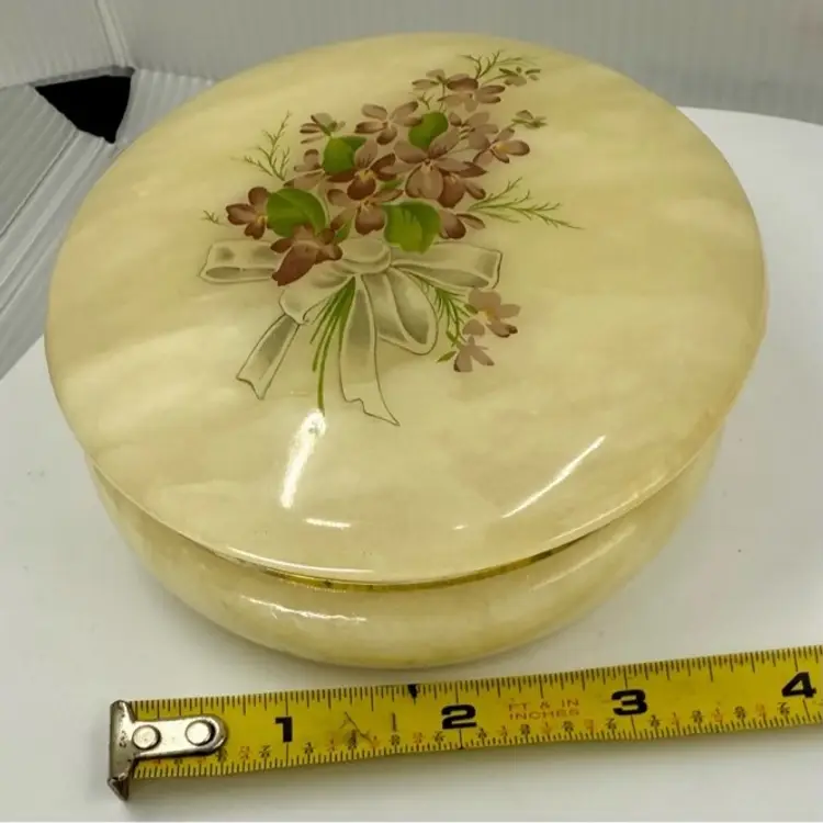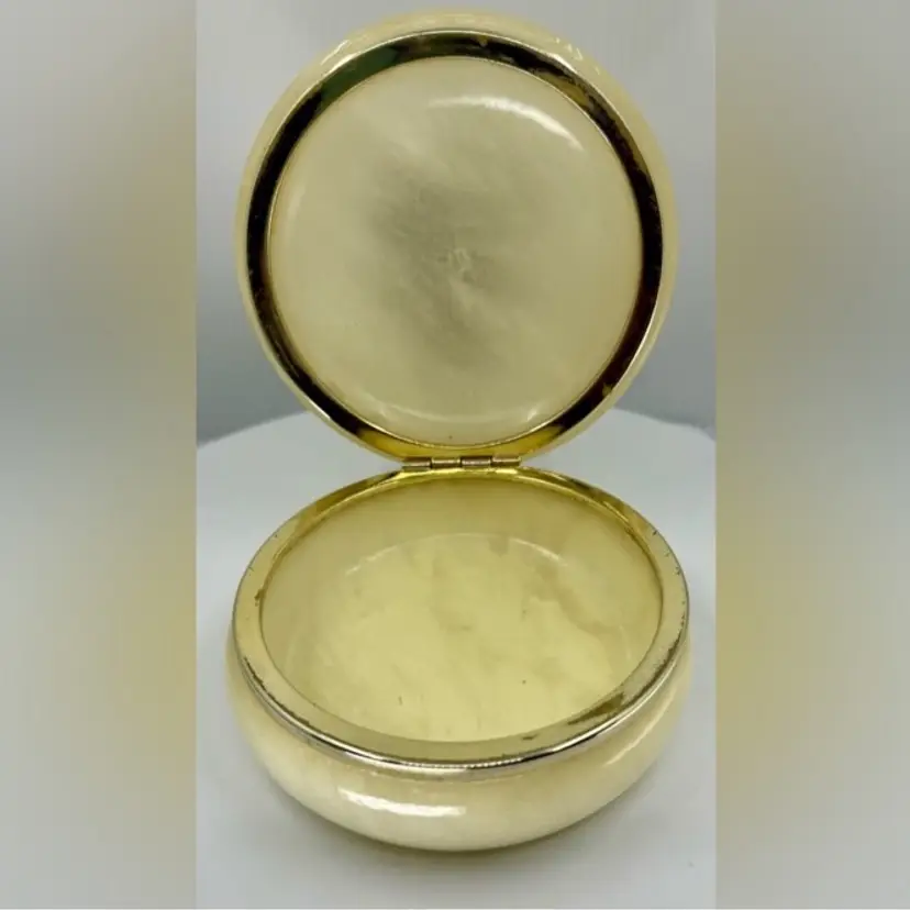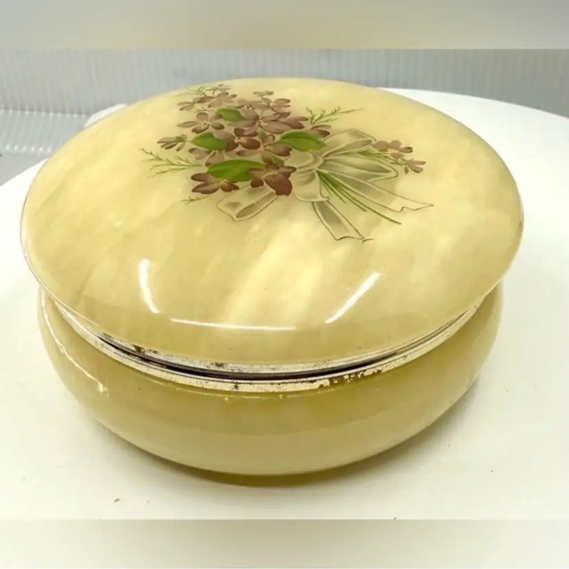 Alabaster Hand Crafted Hinged Round Floral Trinket, Jewelry or Powder Box Case Made in ITALY for George Good in Industry California