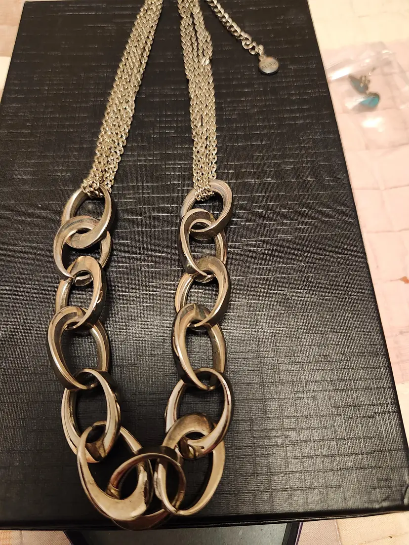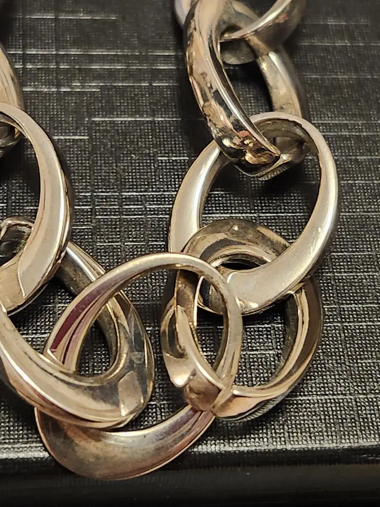 This 17 inch necklace ha a3 1/2 inch extention and is very 90's.very good condition.no wear on the silver links
