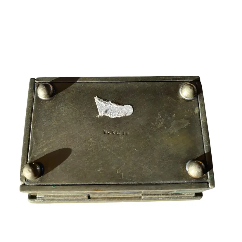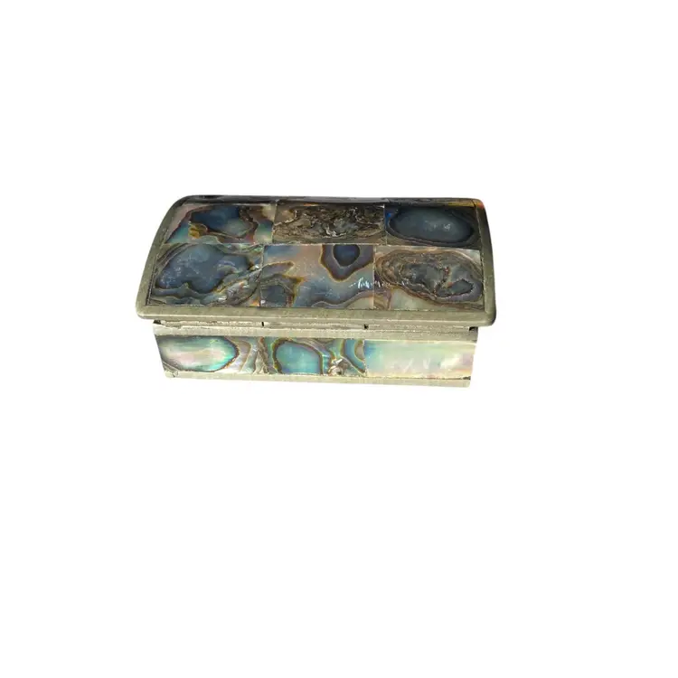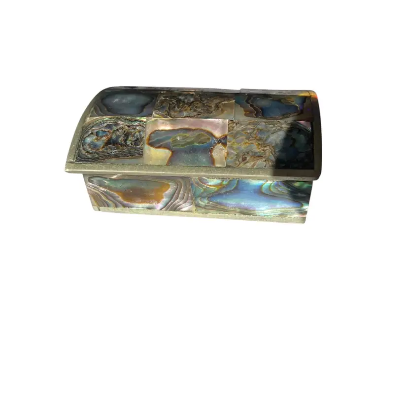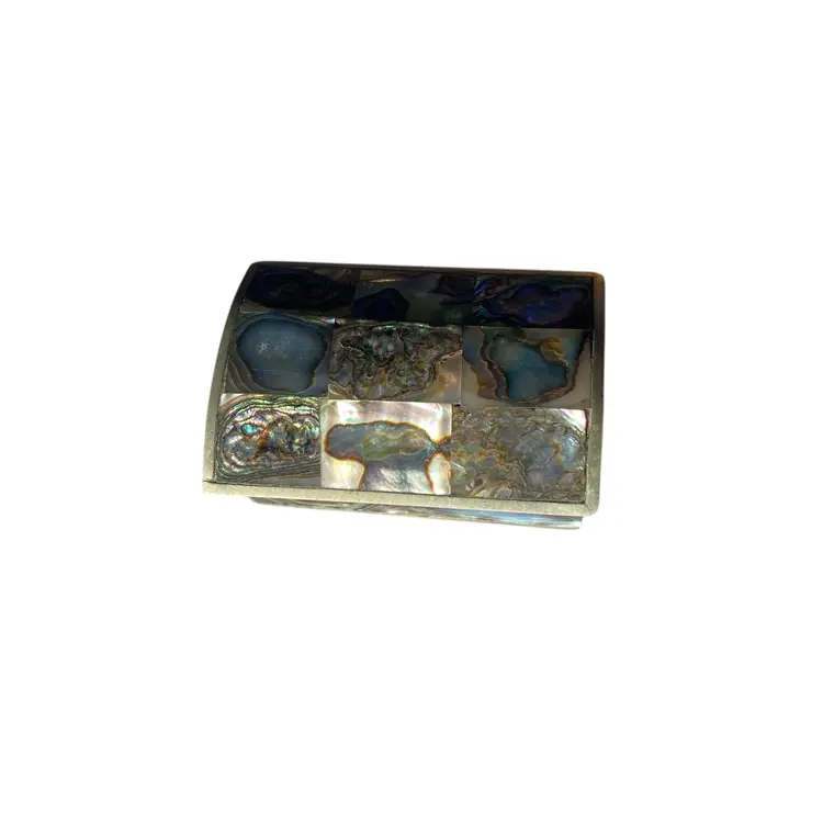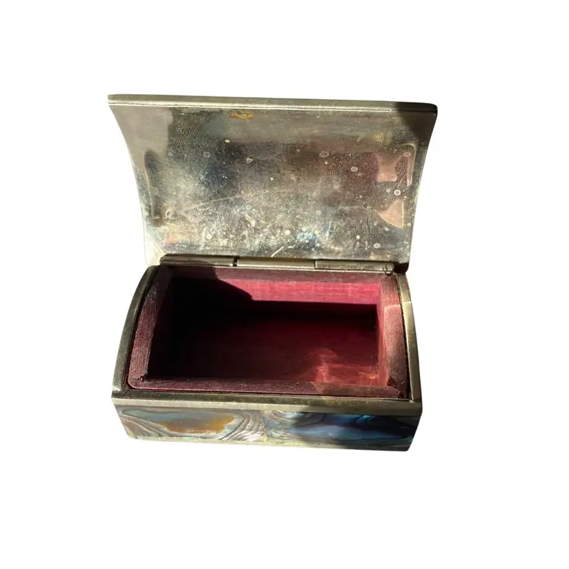 Vintage ALPACA silver & ABALONE Shell Trinket Box wood lining Hinged LID 2.5x1.5 approximately