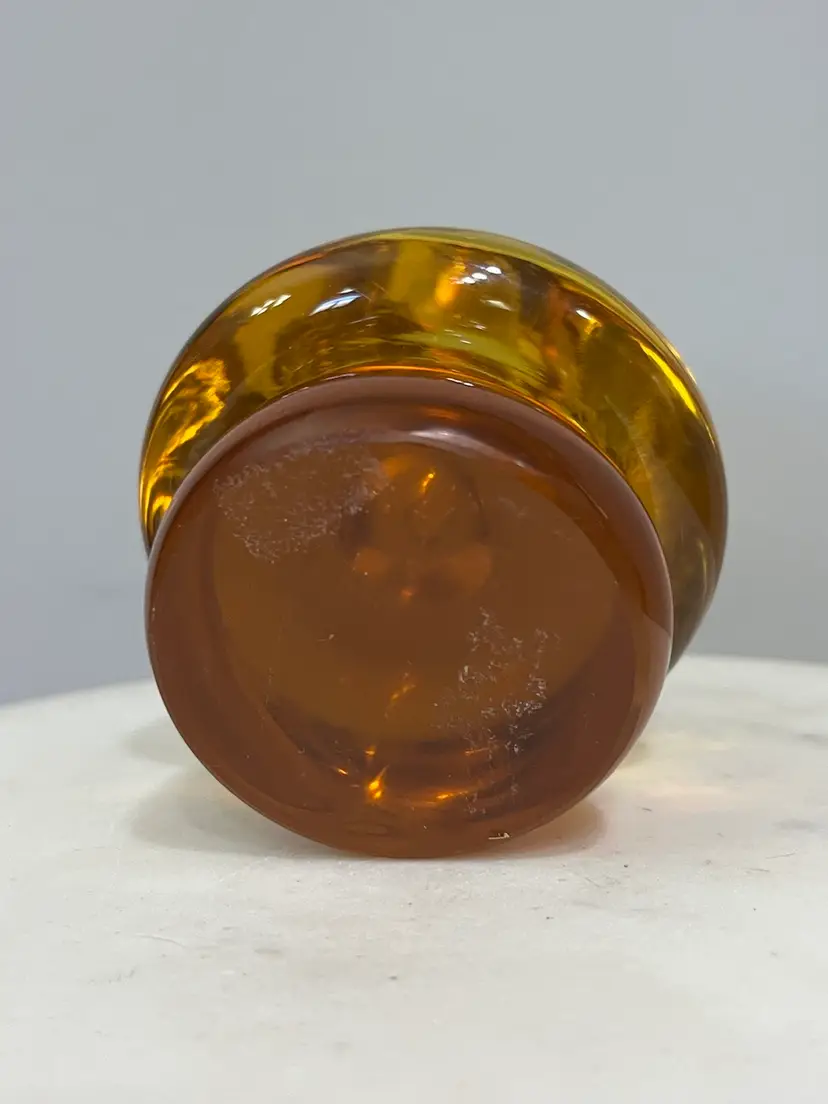 Good preowned condition with no chips or cracks. Has an opening in the top that can fit a skinny pen or pencil. It will not fit any pens/pencils that have grips on them. Some scratches to the bottom as shown. Measures a little over 3” tall. Message me with any questions.
