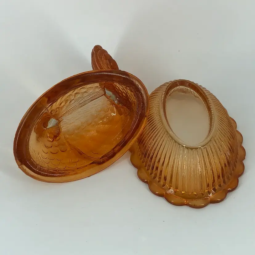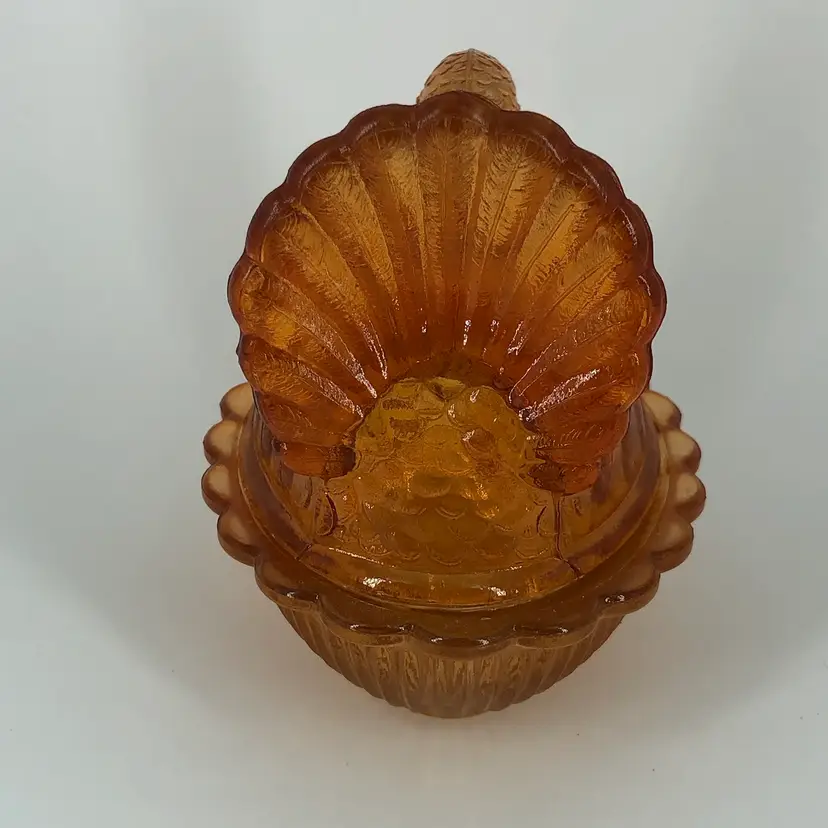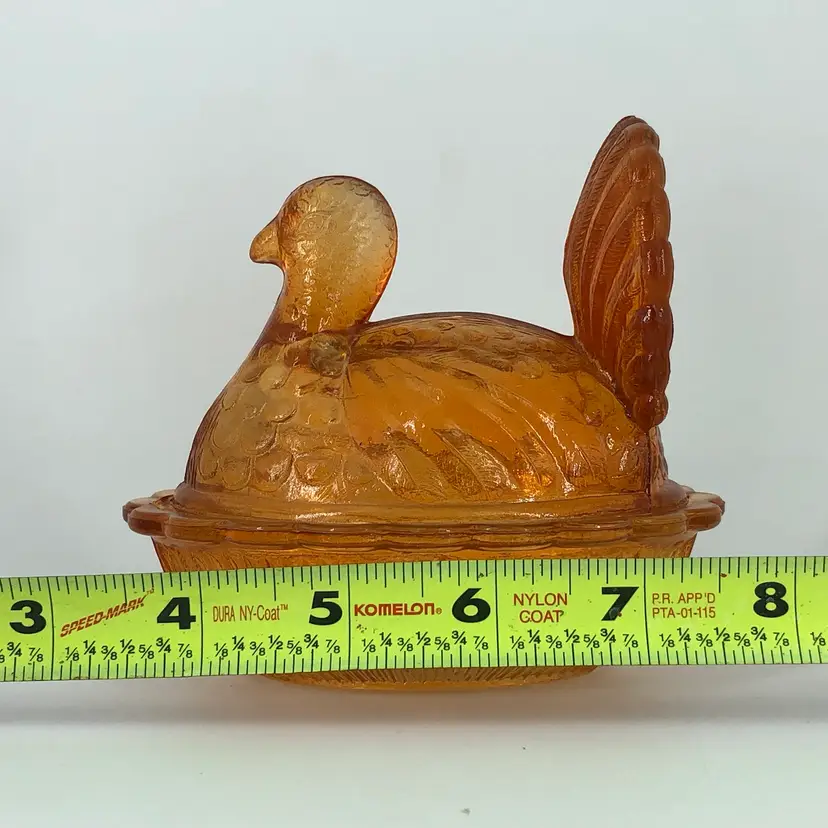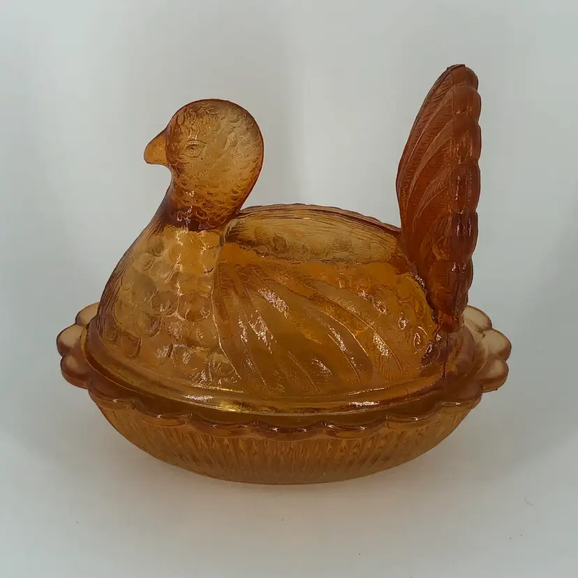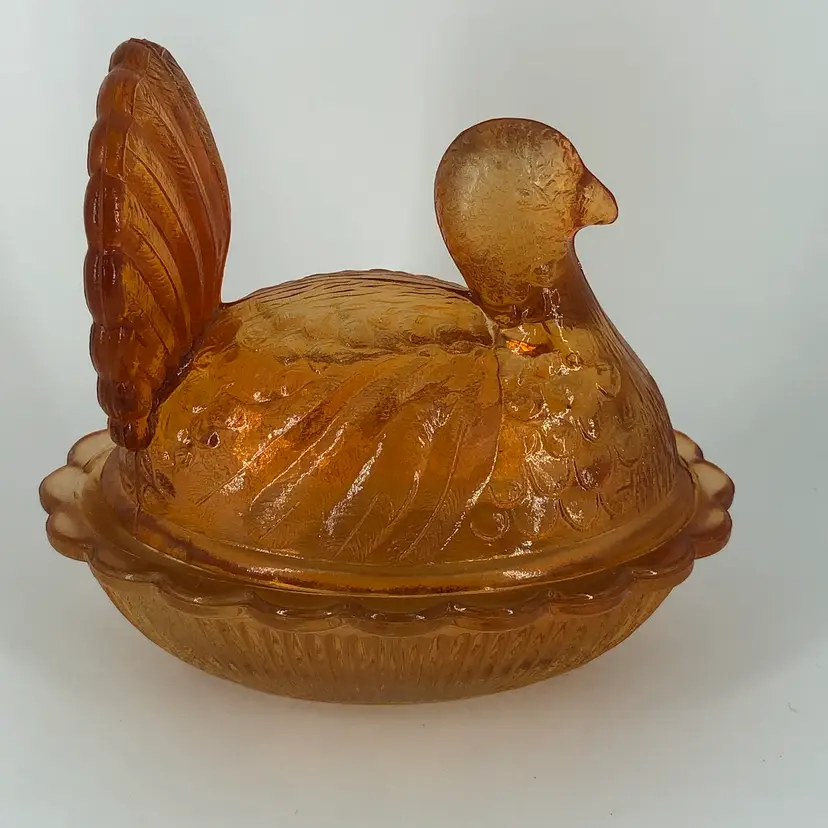 Vintage Amber Glass Turkey on Nest Trinket Dish