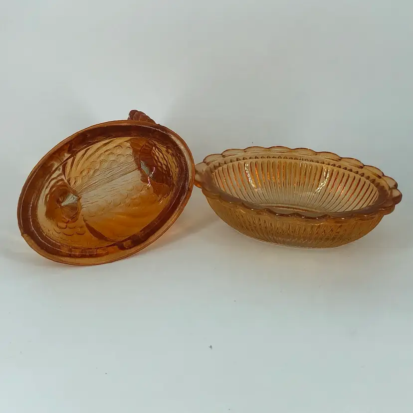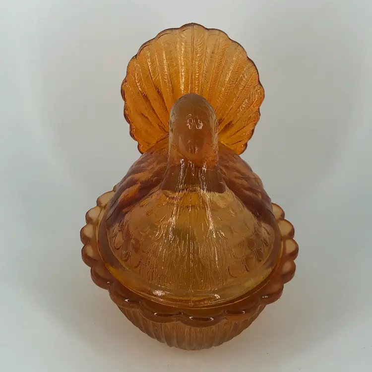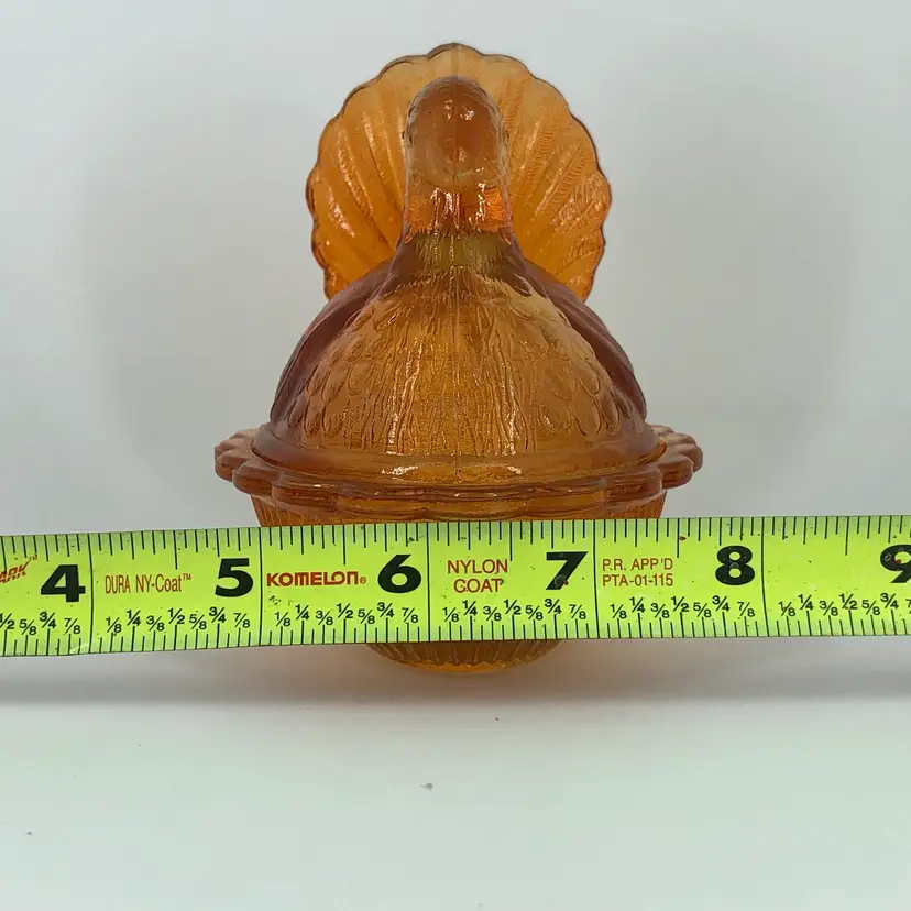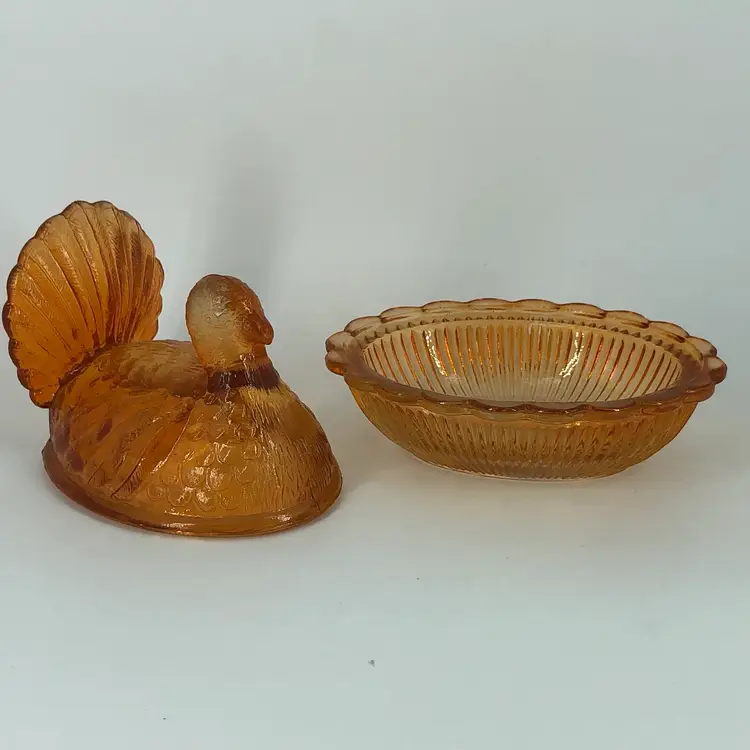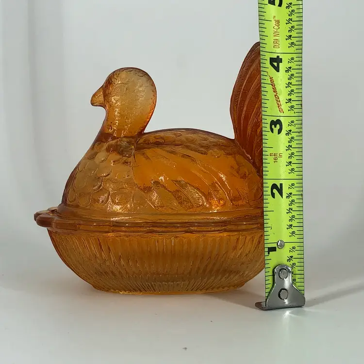 Vintage Amber Glass Turkey on Nest Trinket Dish
