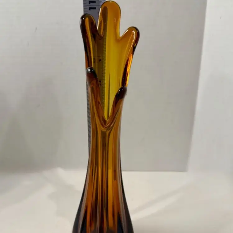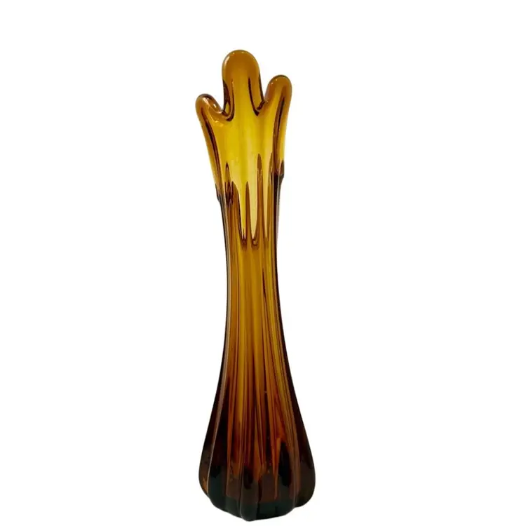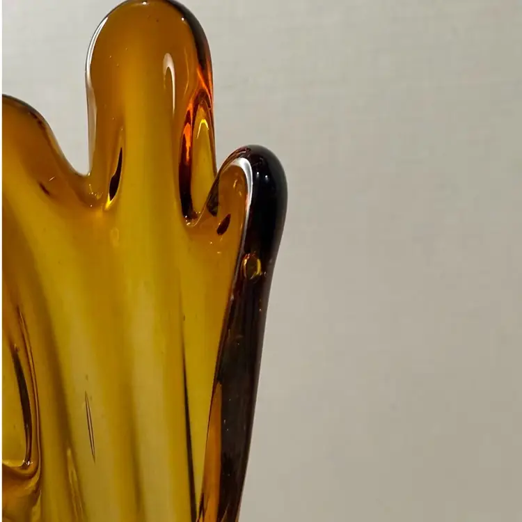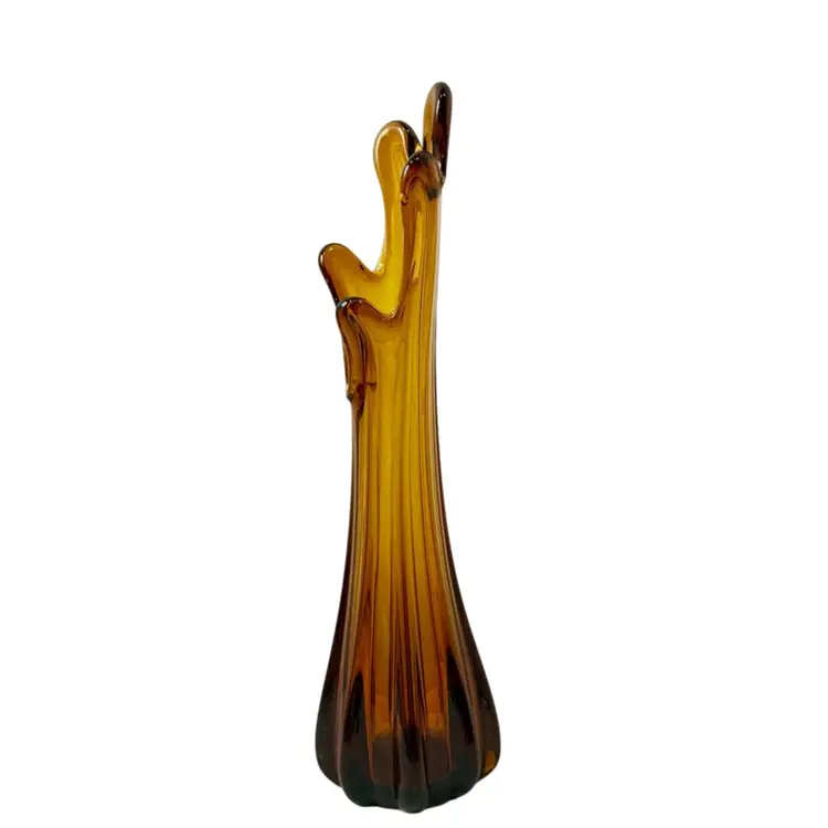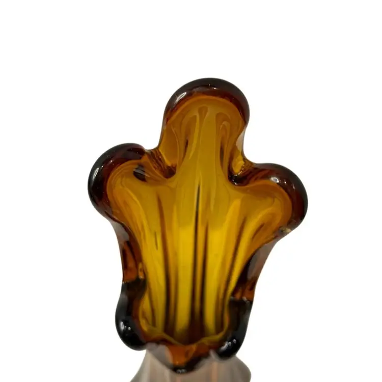 Vintage MCM Amber Pulled 5 Finger Vase.
