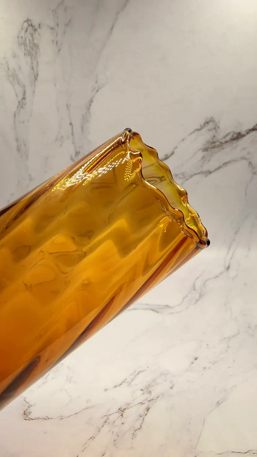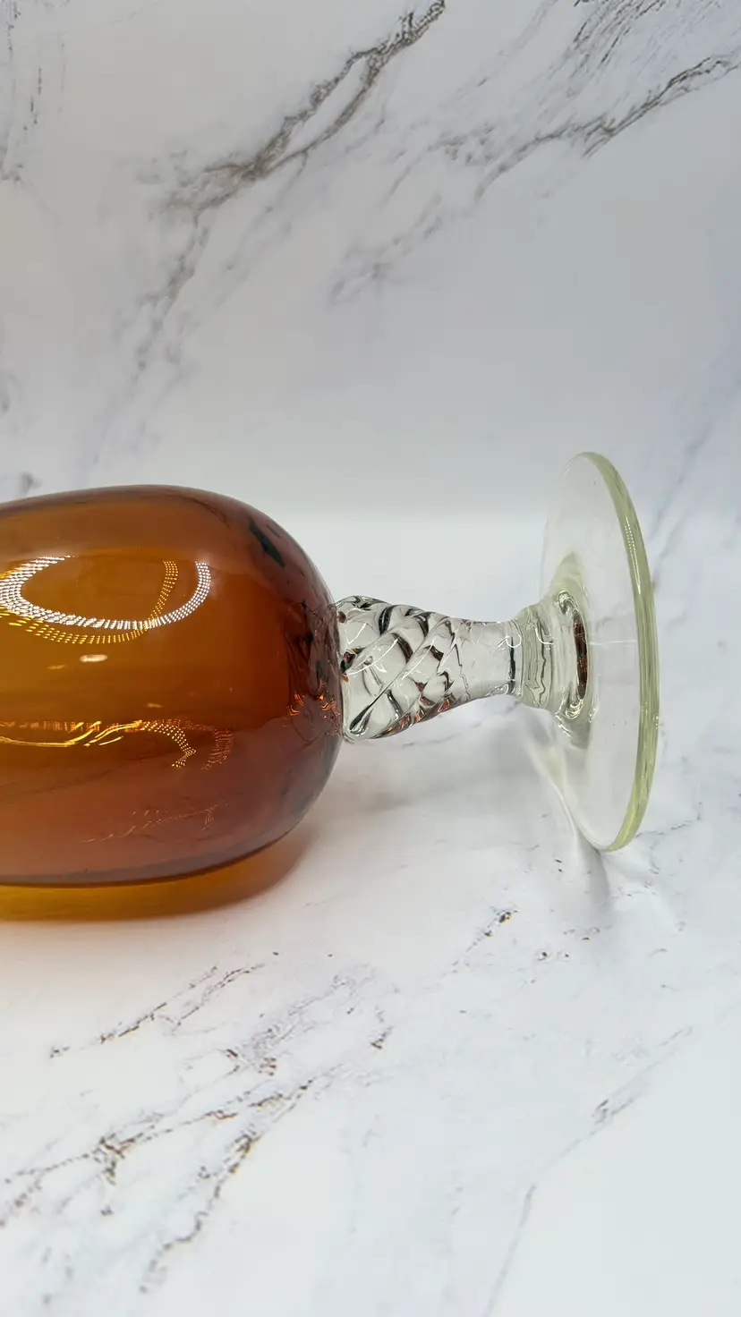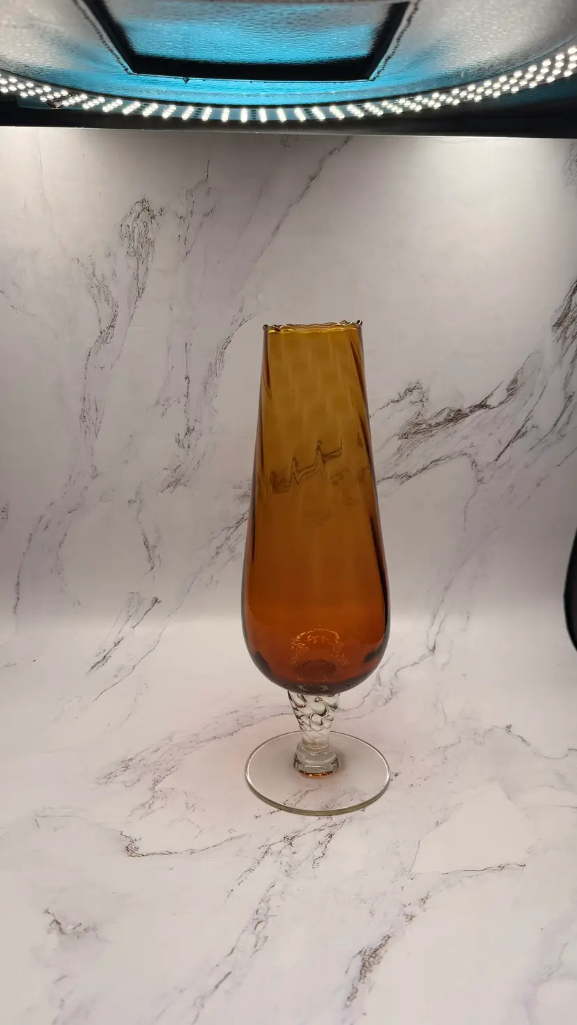Vintage Amber Swung Glass Vase Clear Foot Twisted Stem MCM Mid Century. Light scratches from age/use. No cracks or chips. Measures approx.10" tall and base is approx. 3.25". Comes from a smoke free home. If you have any questions please feel free to contact me.