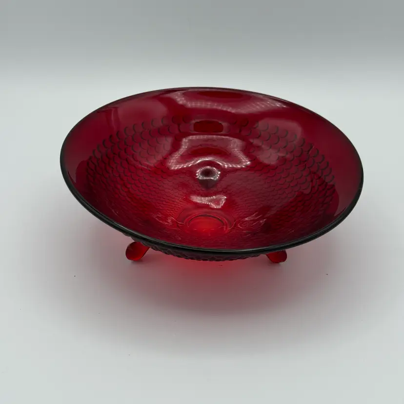 Vintage Amberina Hobnail Red Glass Footed Bowl. No Chips/Cracks. 6 1/2" Wide.