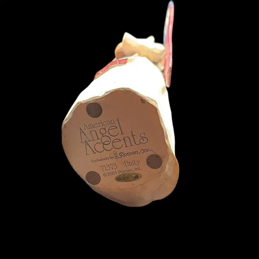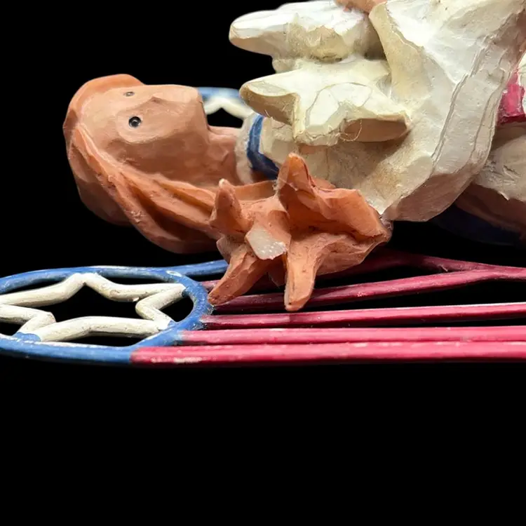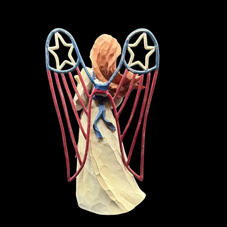2001 resin angel featuring carved folk-art style look. End of one hair strand is missing tip. See photo.