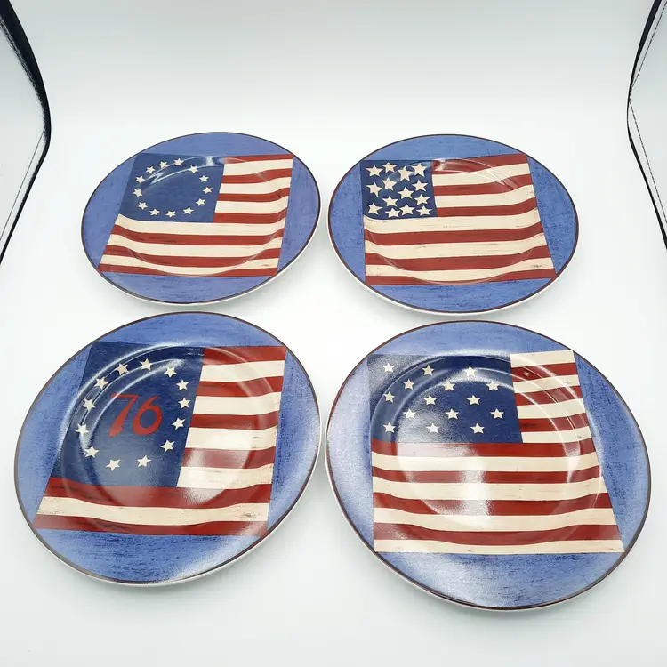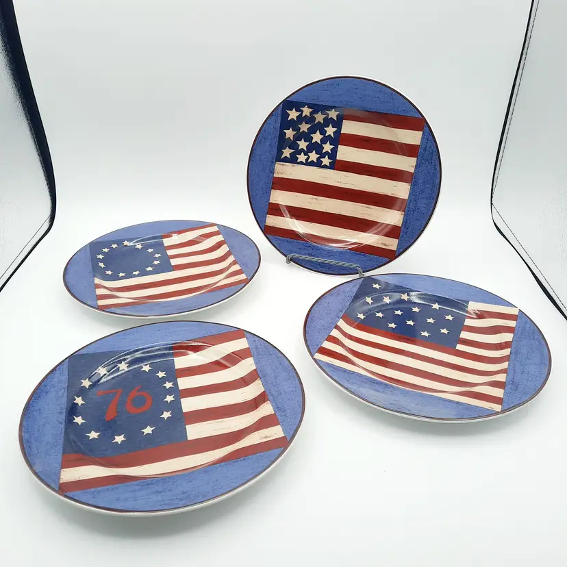 Vintage American Flag Plates USA 4th Of July Warren Kimble Spirit Of The Flag Sakura 1998 Brandon House