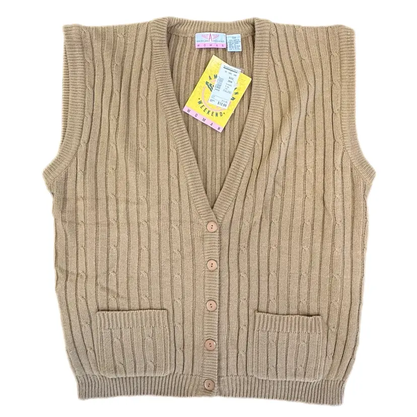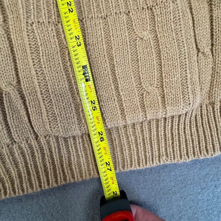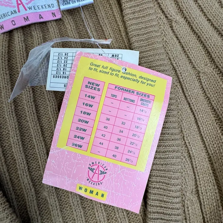 Sweater is new old stock with original tags. Color is a richer camel brown than in first photos. See photos for condition and measurements.