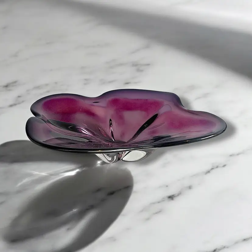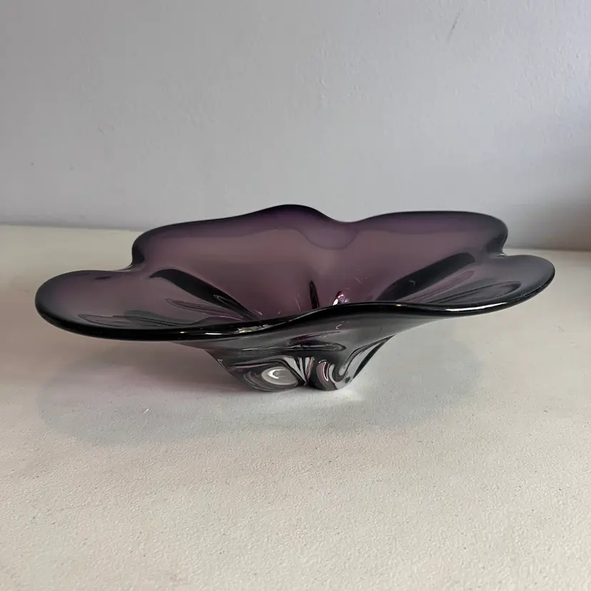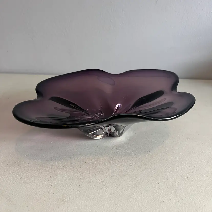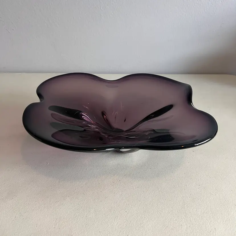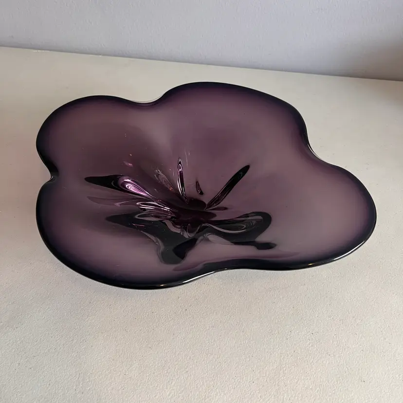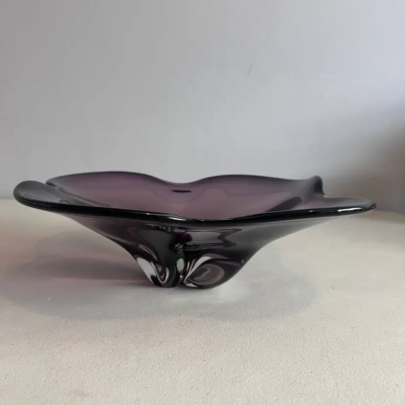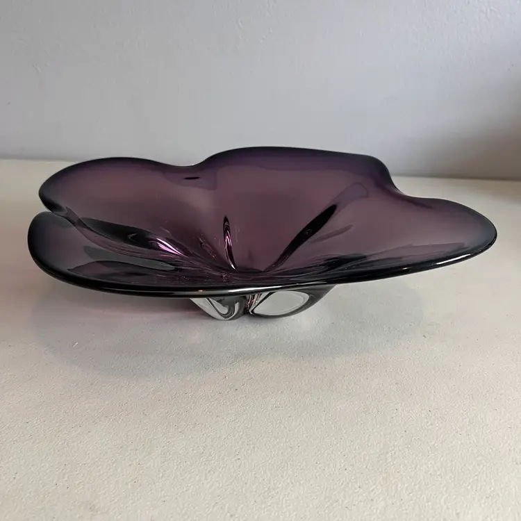 Here We Have a Vintage Amethyst Art Glass Large Centerpiece Mid Century Modern Art Glass