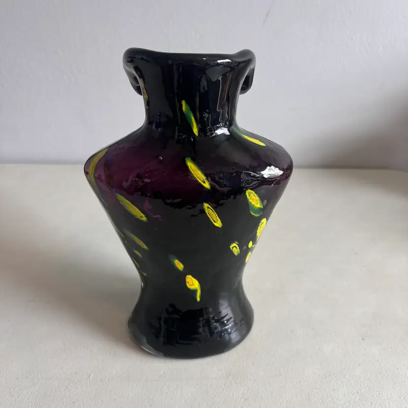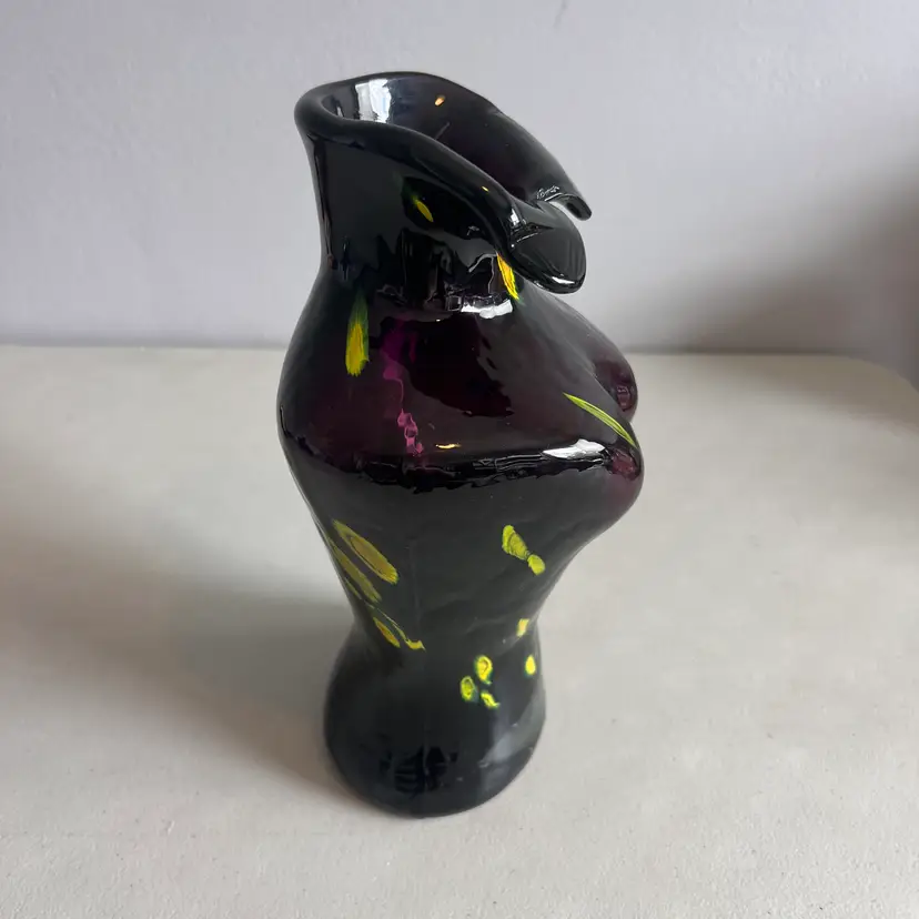 Here We Have a Vintage Amethyst Glass Bust Vase Art Glass Torso Vase Purple With Yellow MCM