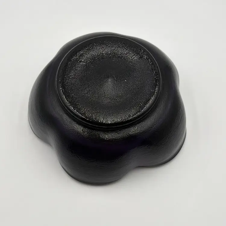 The bowl is shaped like a flower which has five petals and the flower frog part is part of the base and there are 13 holes.