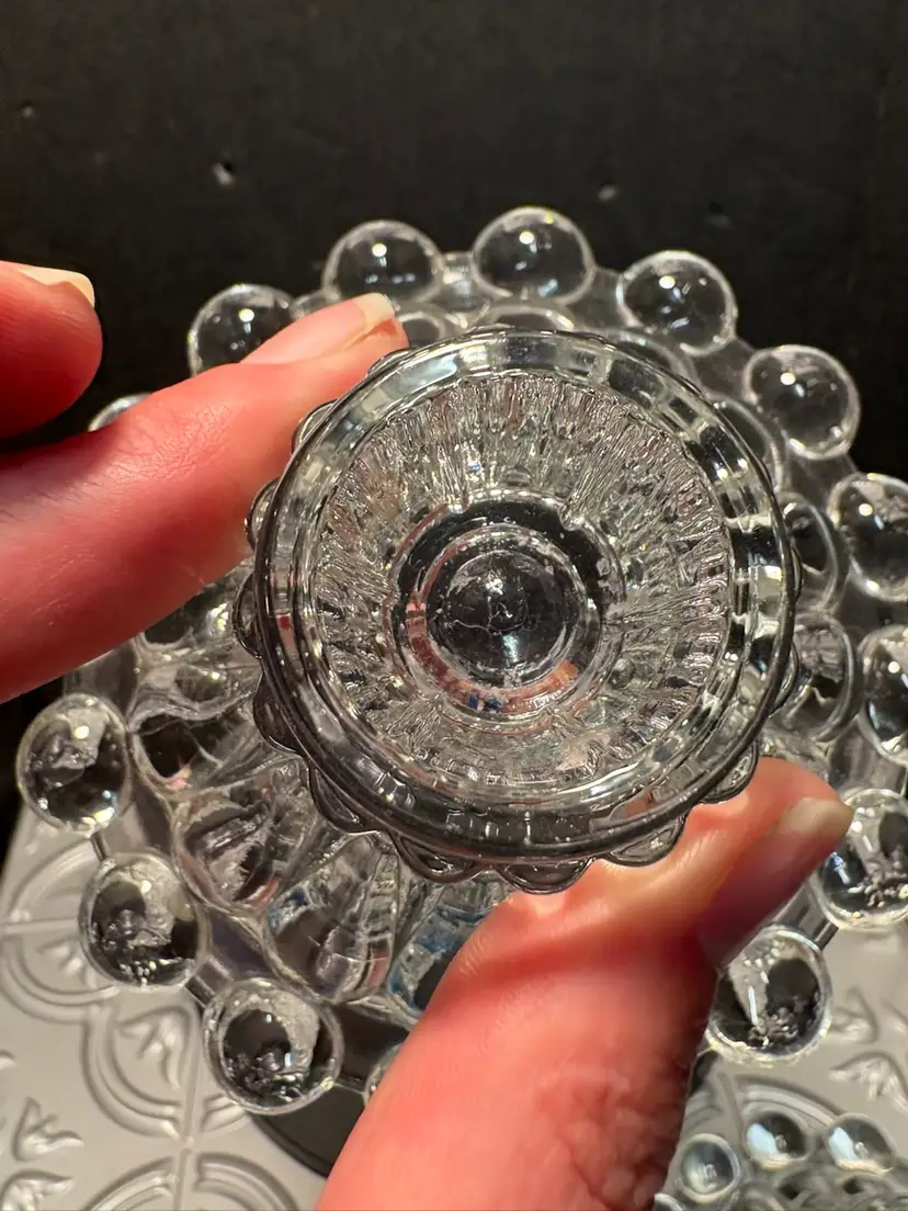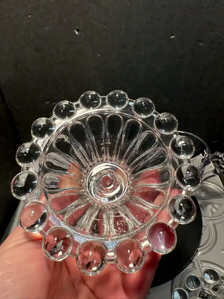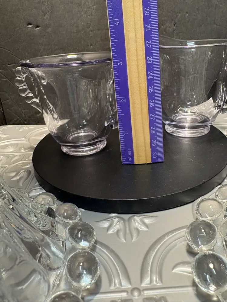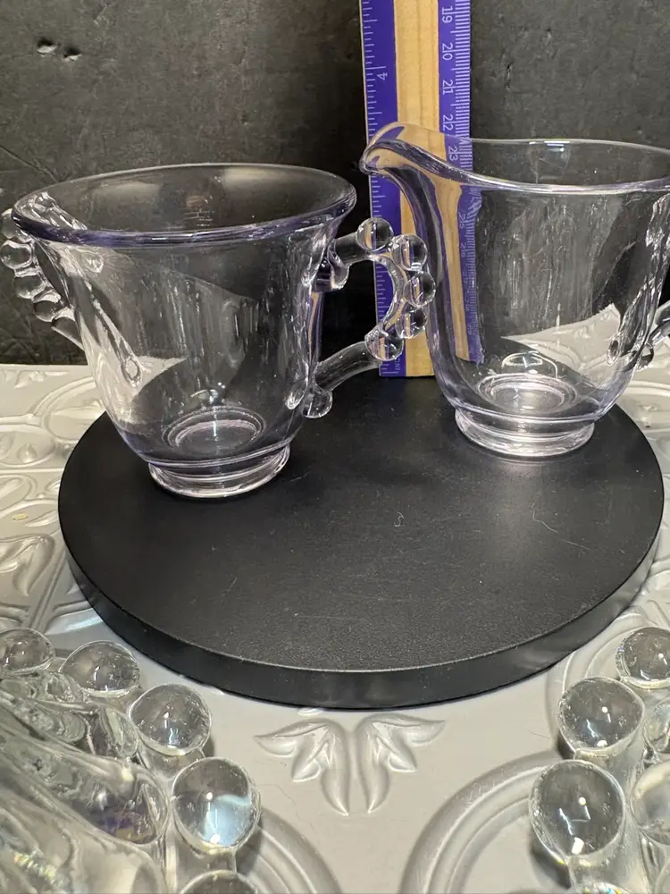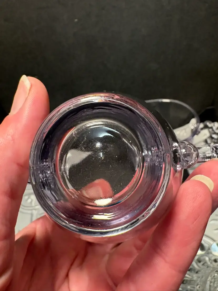 No chips or cracks set your tea table with the candles and the purple sun changed cream n suger the light lavender is lovely in the candle light