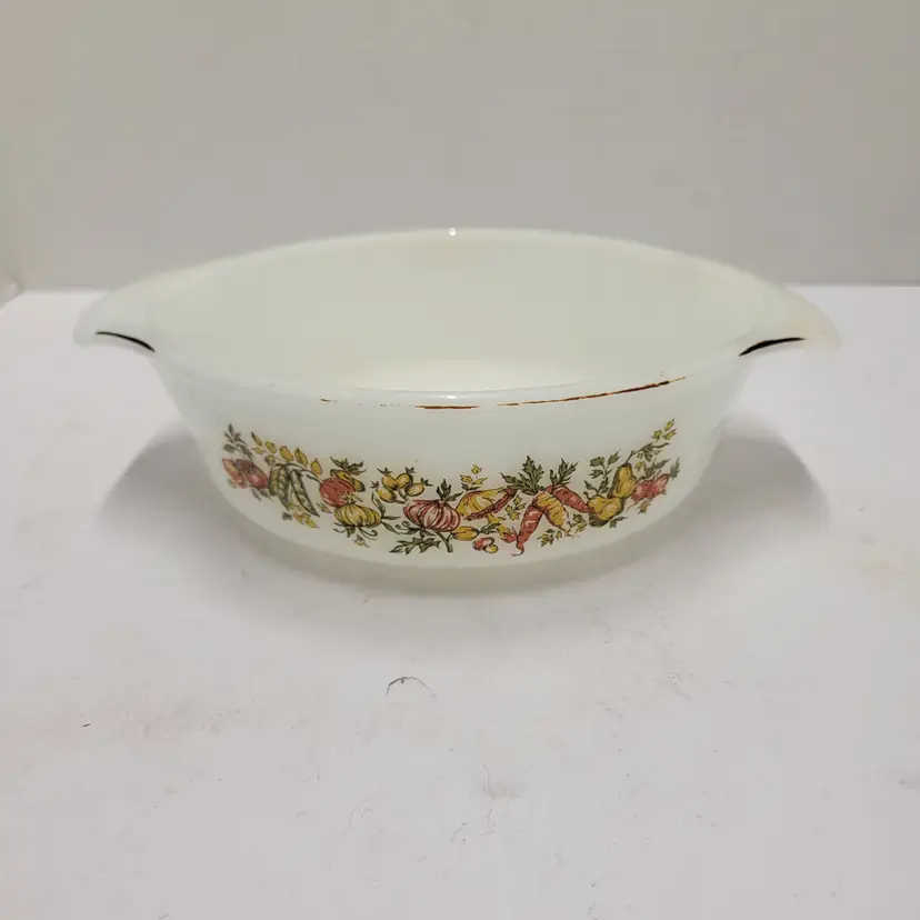Vintage Anchor Hocking Fire King 1 Qt 436 Round Retro Casserole Dish Vegetables