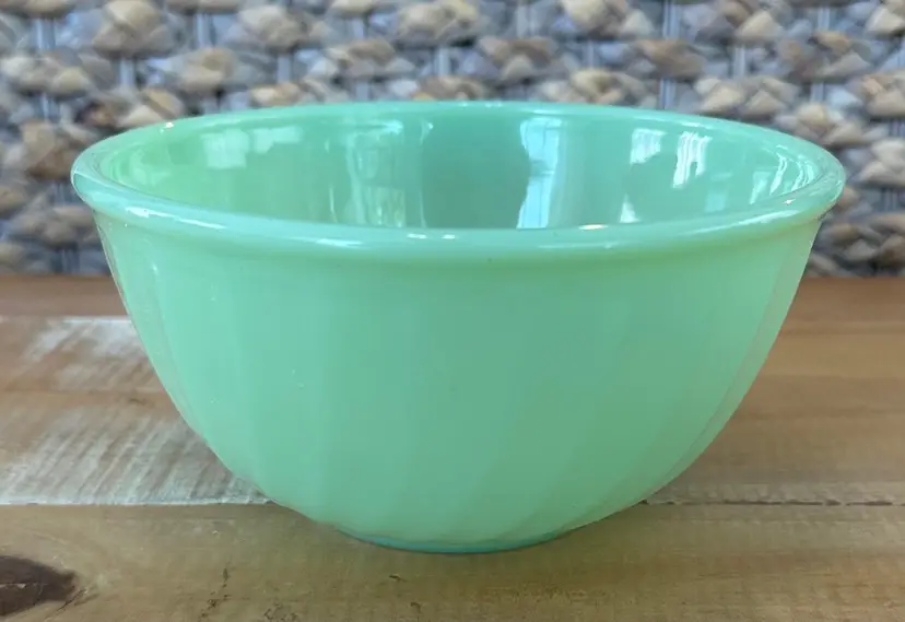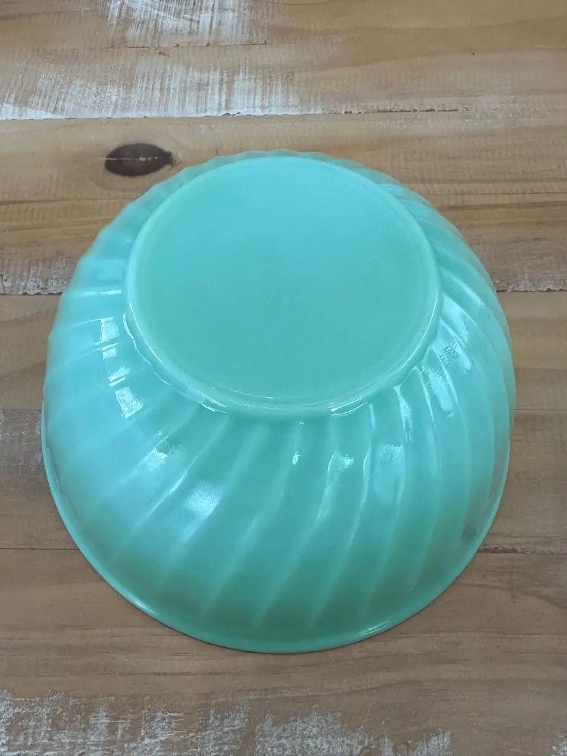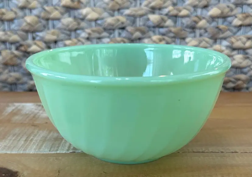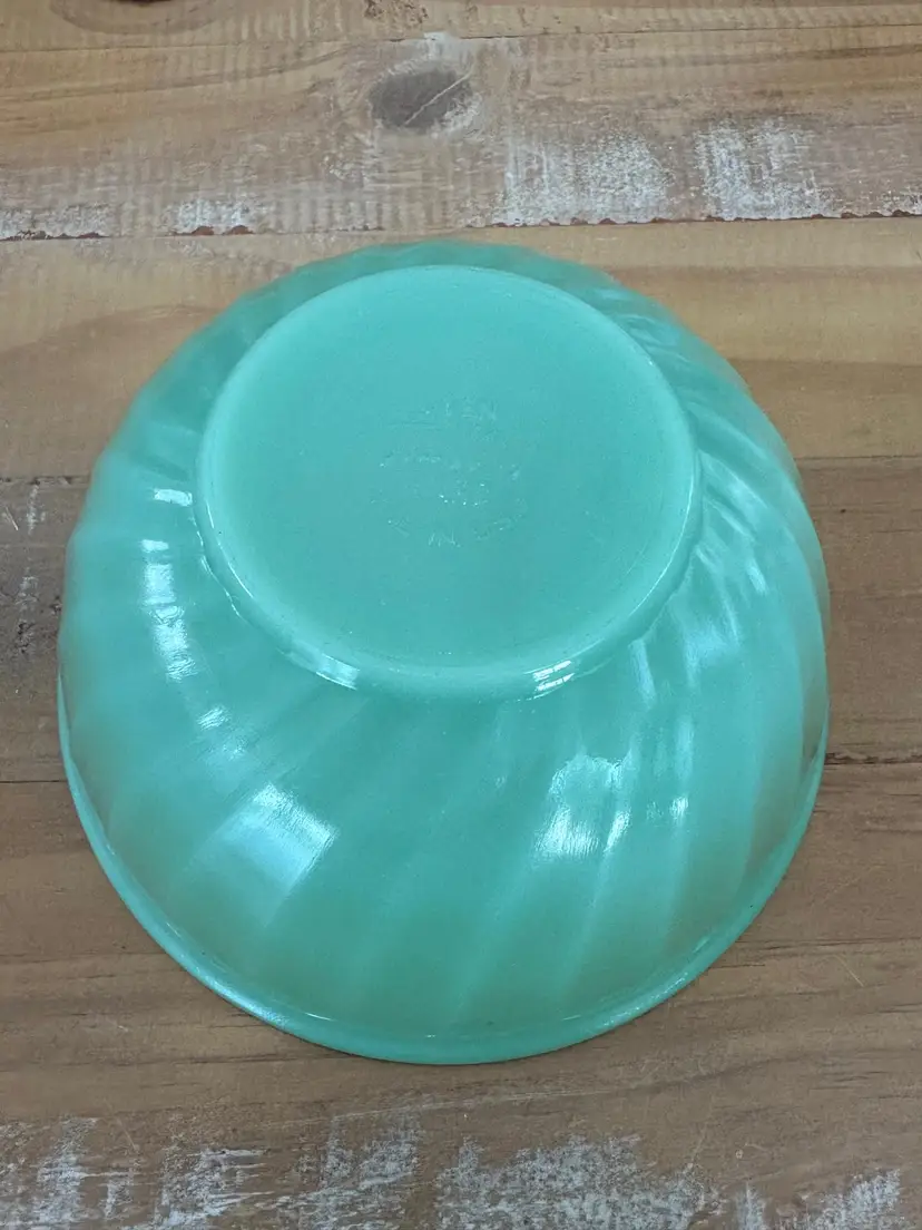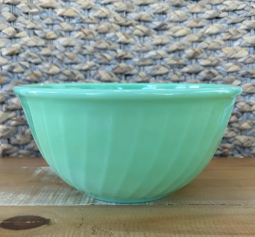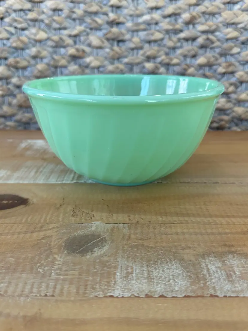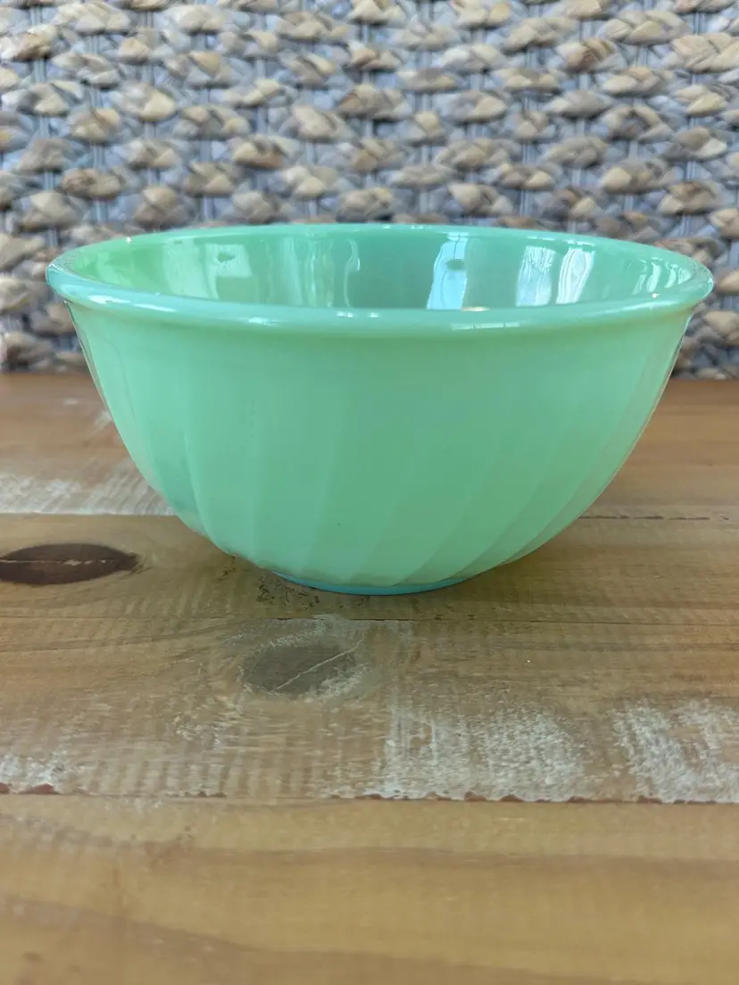 Add a touch of vintage charm to your kitchen with this set of 3 jadeite mixing bowls. Perfect for baking, serving, or display, these bowls are both functional and stylish. Sizes range from small to large, making them versatile for all your culinary needs. Large W: 9" H: 4.5" Medium W: 7" H: 3.5" Small W: 6" H: 3"