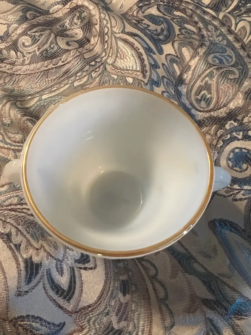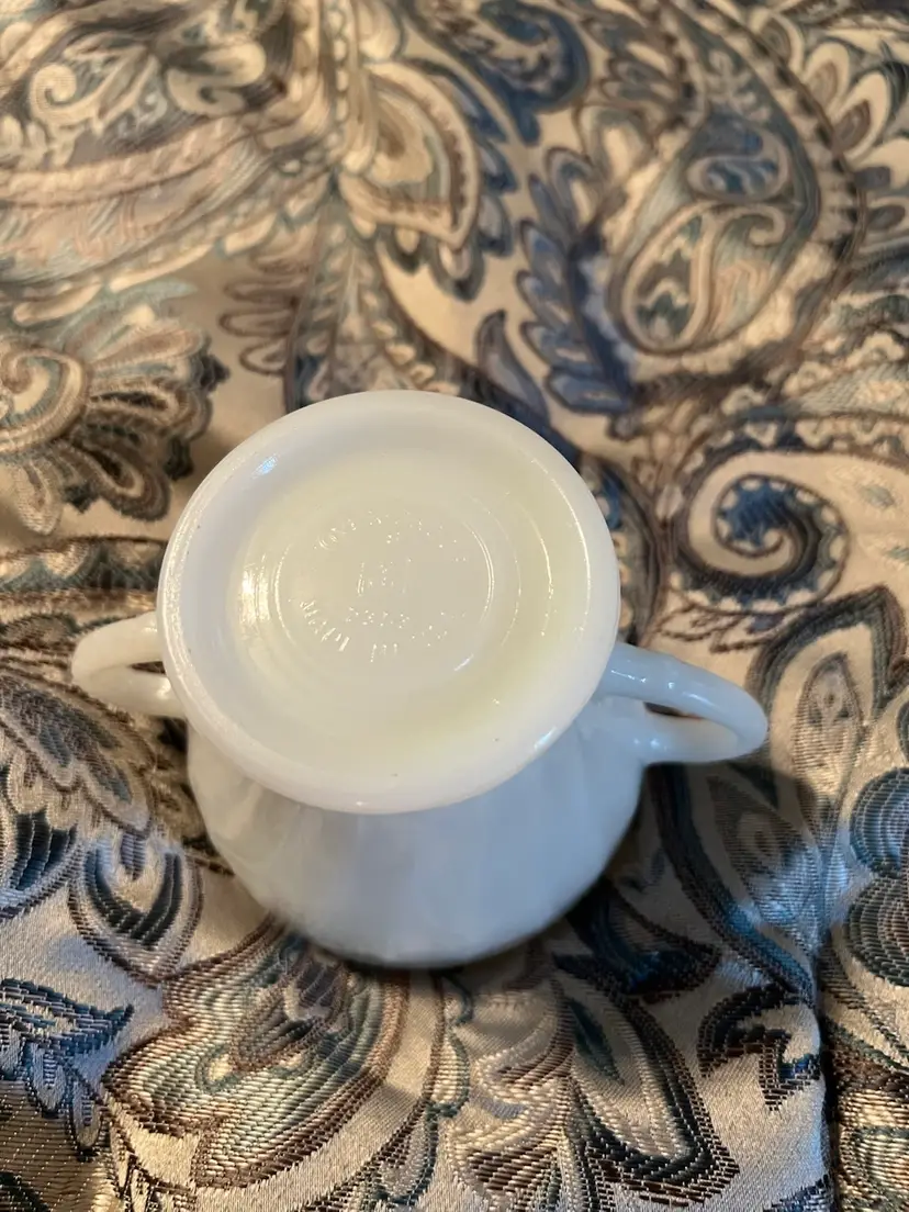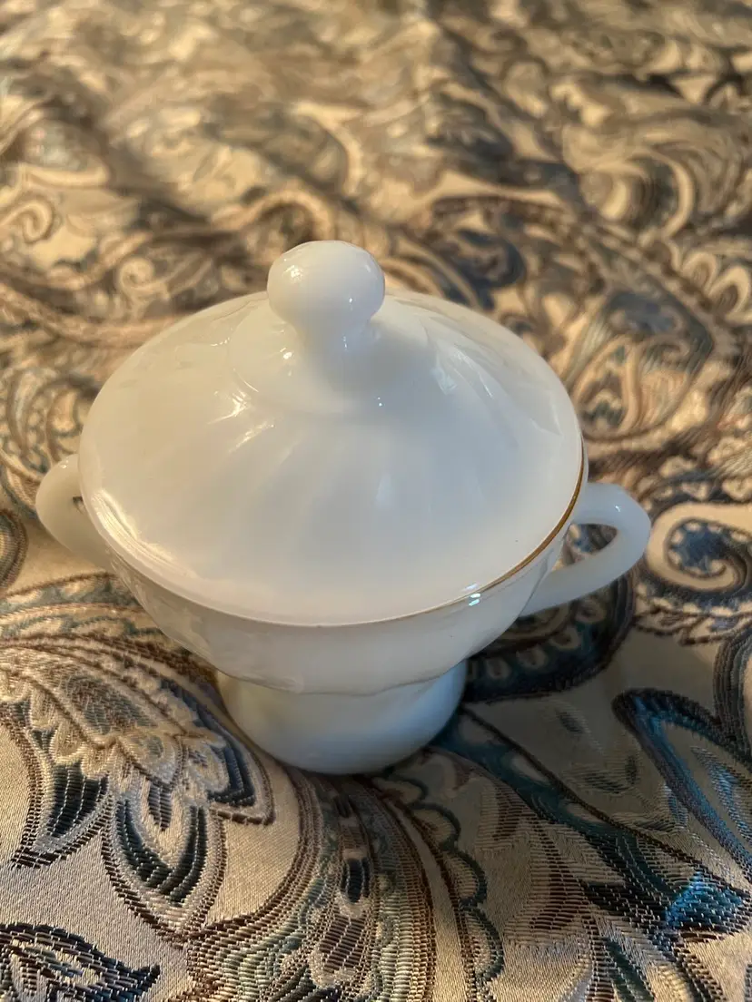 Vintage Anchor Hocking Fire King Milk Glass Double Handled Lidded Sugar Bowl