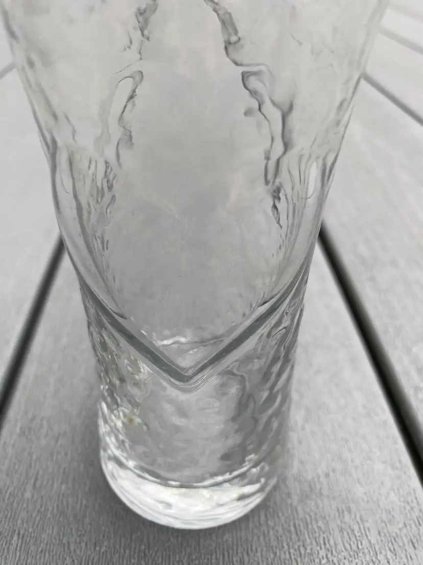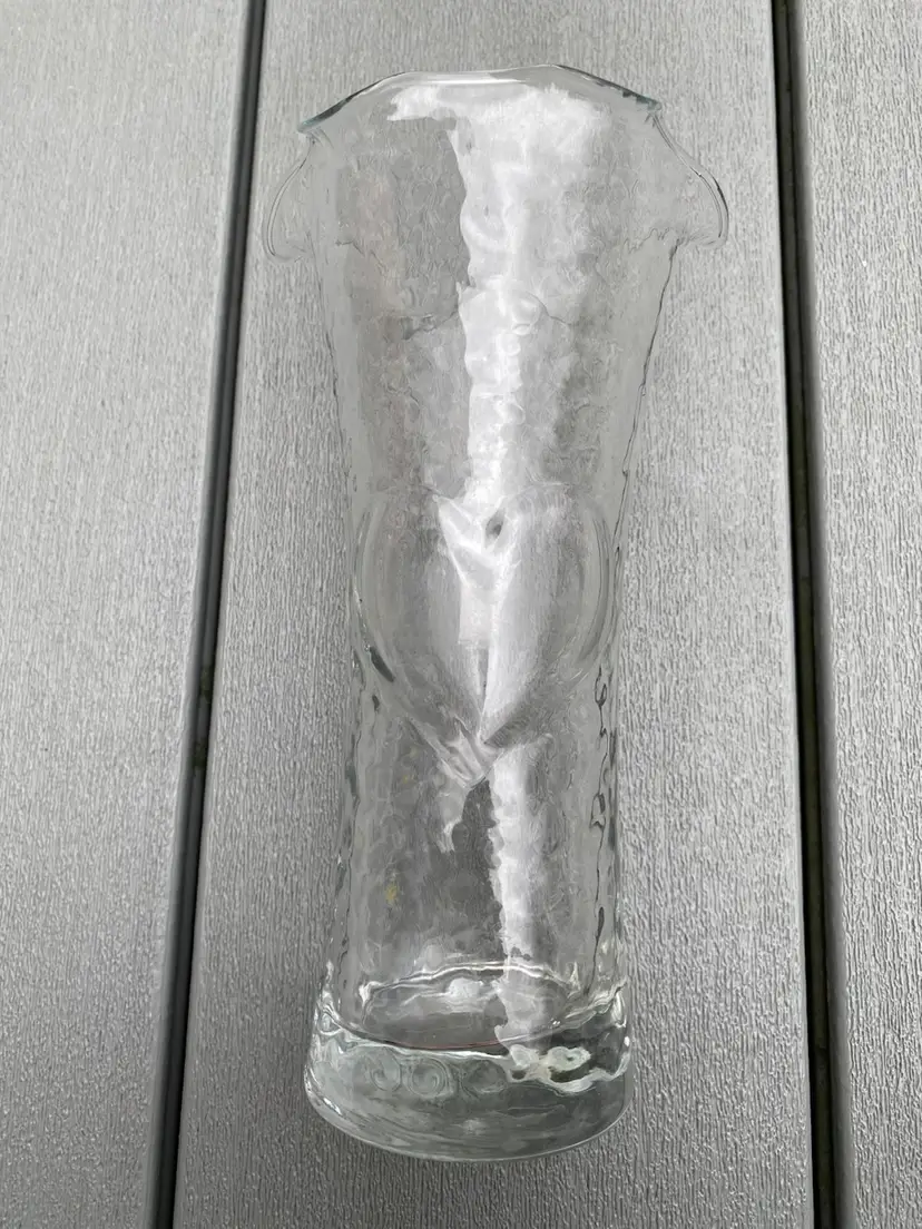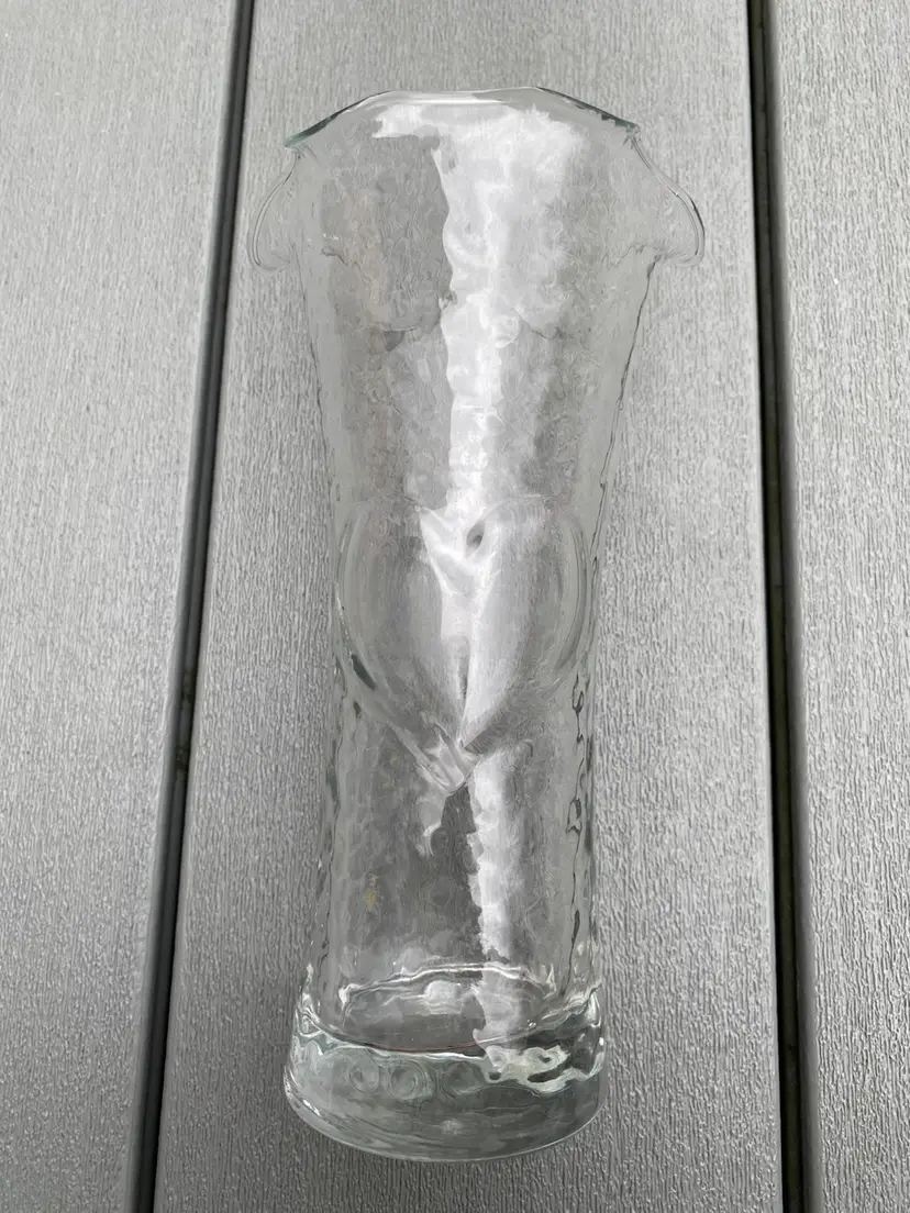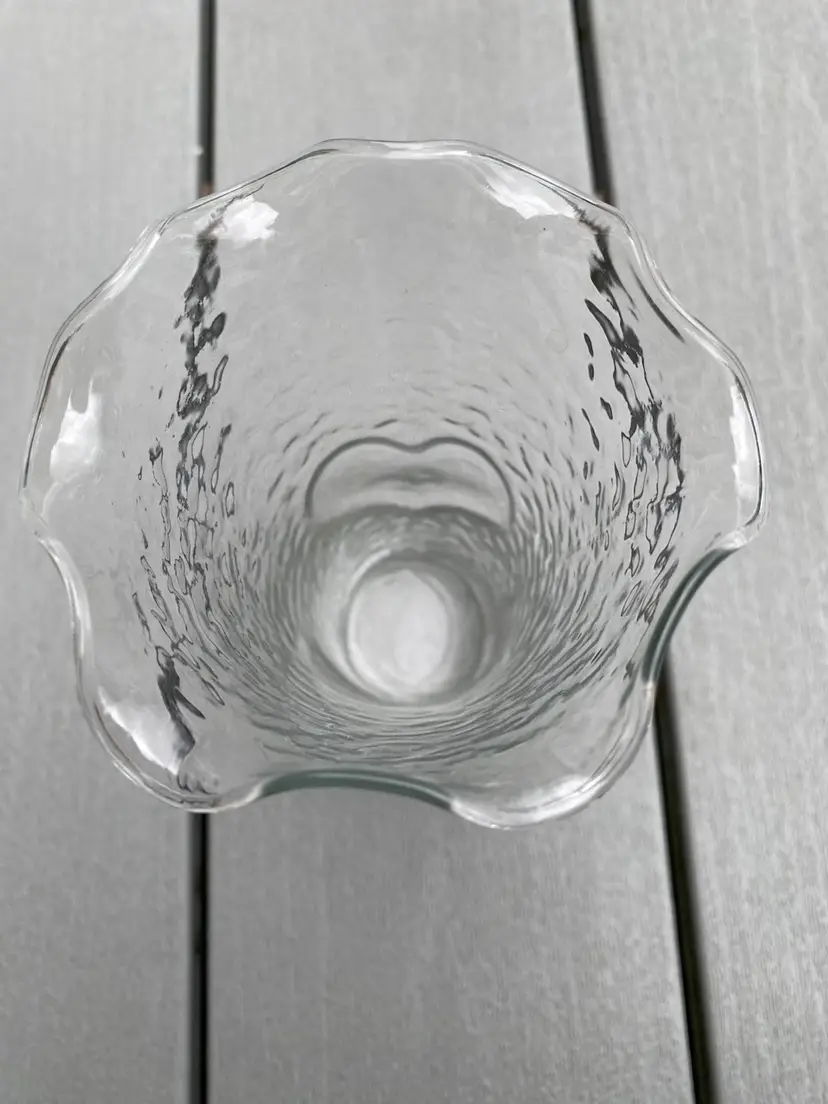 This is a pretty vintage ANCHOR HOCKING clear glass vase with a dimpled texture, ruffled top, and an embossed heart design. Would be a lovely gift!
