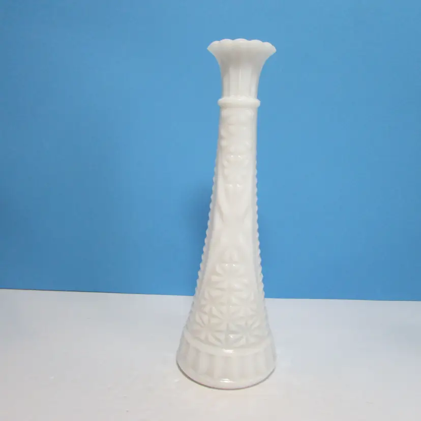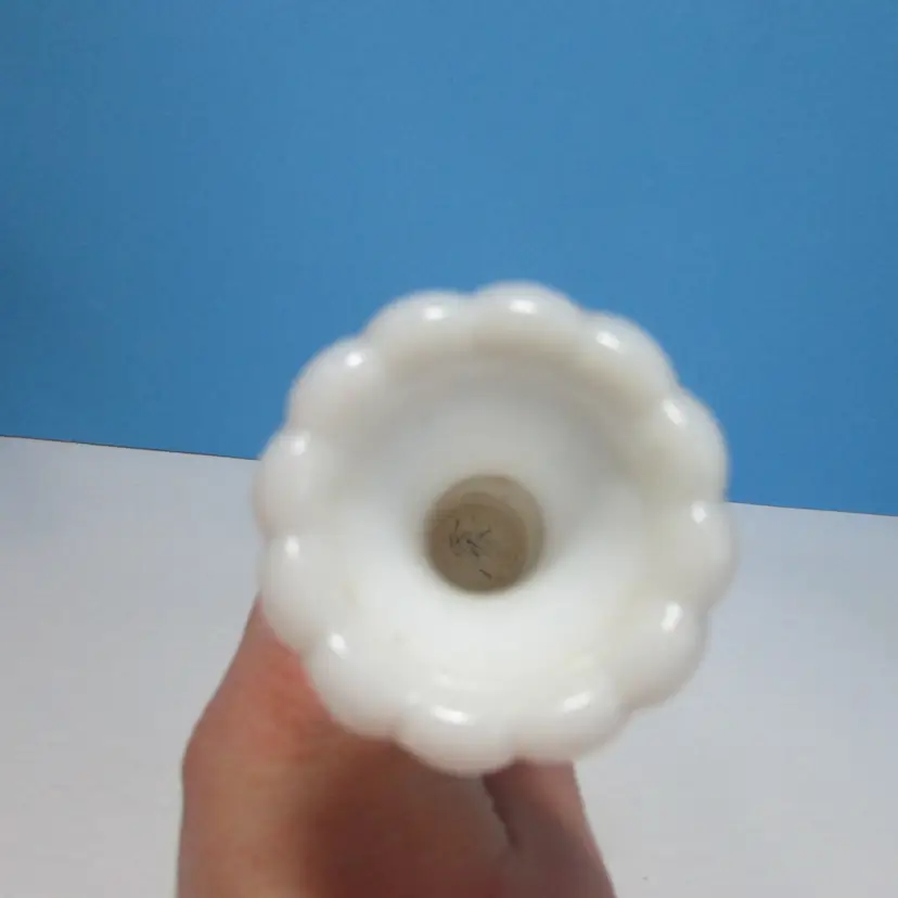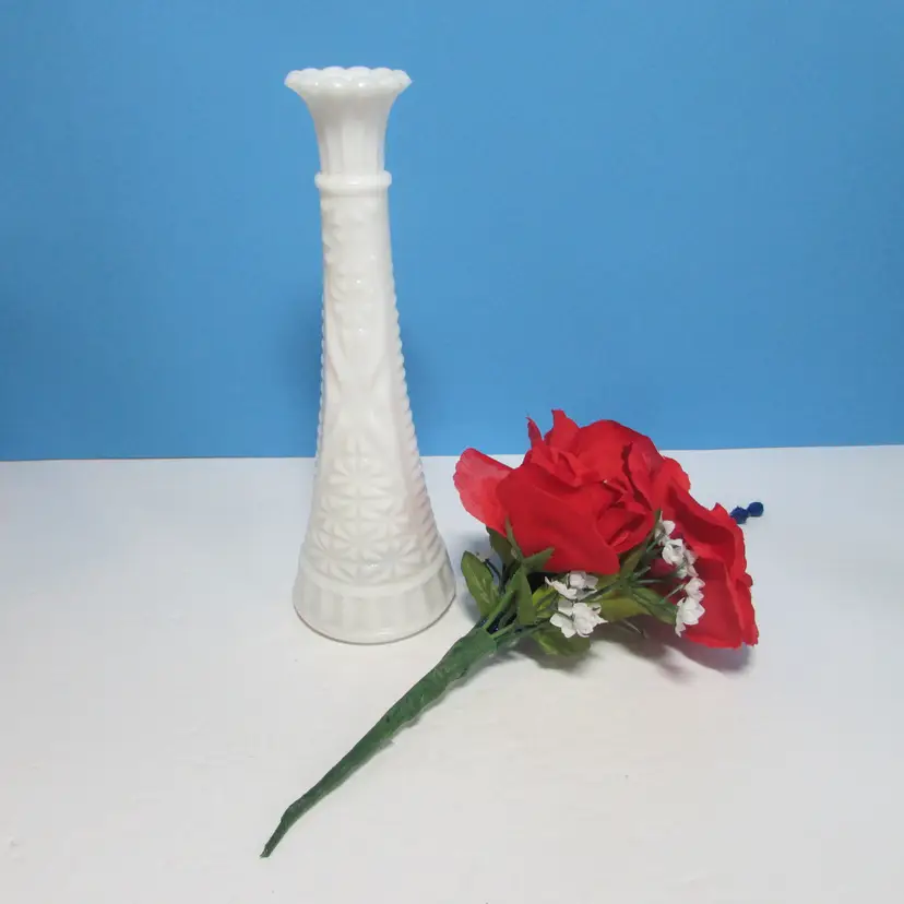 This lovely vase has some wear inside, it is about 9" tall. We added some flowers for a patriotic look. This is shipped from a smoke free home. Thanks for looking!