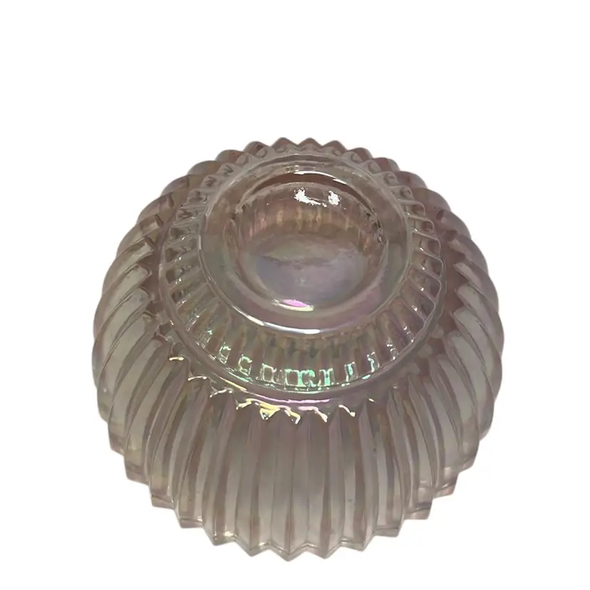 Ribbed panel design - 1936 - 1949 In excellent condition and look at that iridescent shine ! Very rare piece with a great history behind it. Measures 2” tall & 3.5” wide