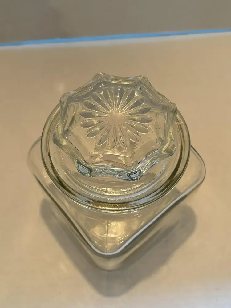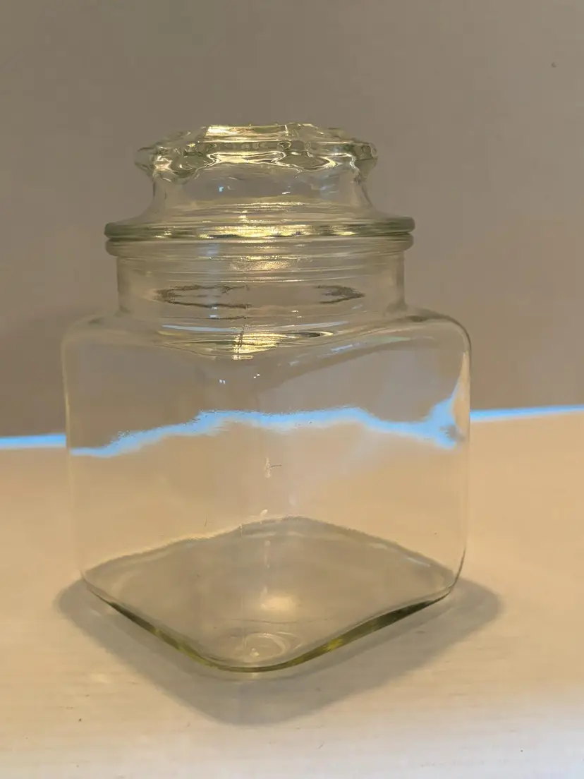 This vintage Anchor Hocking square apothecary jar is a stylish addition to any kitchen. The clear glass and retro design make it a great storage solution for small items. The jar is an original piece and was made in the United States. The jar is perfect for storing small items such as candies, cotton balls, or bath salts. The square shape gives it a unique look that will complement any kitchen decor. The Anchor Hocking brand is known for its quality and durability, making this jar a reliable storage solution. Add this vintage piece to your collection today!